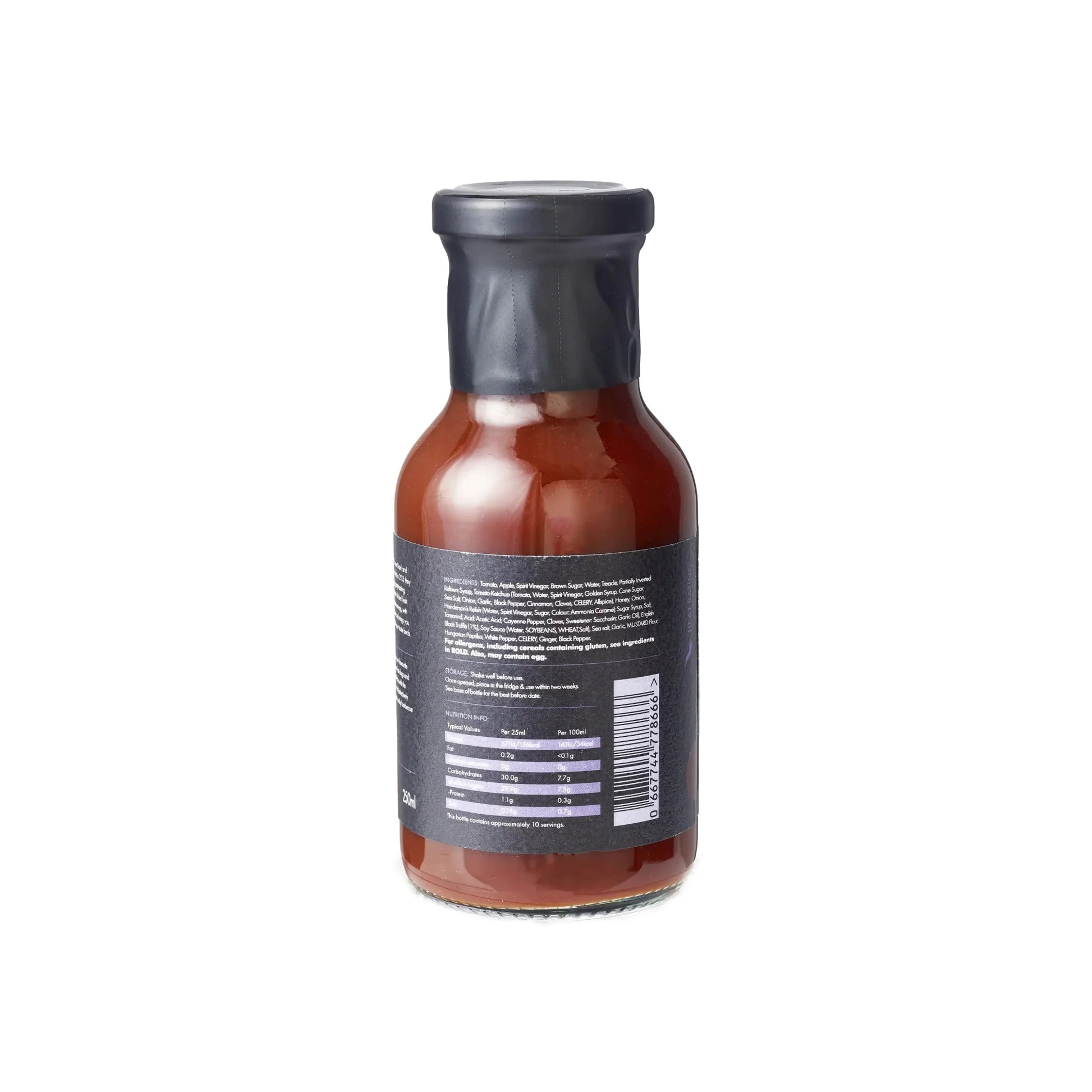 Ingredients: Apple, Tomato, Vinegar, Dark Brown Sugar, Treacle, Golden Syrup, Ketchup (CELERY), Honey, Onion, Henderson's Relish, English Black Truffle (1%), Soy Sauce (SOY, WHEAT), Sea salt, Garlic, MUSTARD, Hungarian Paprika, White Pepper, CELERY, Ginger, Black Pepper.
