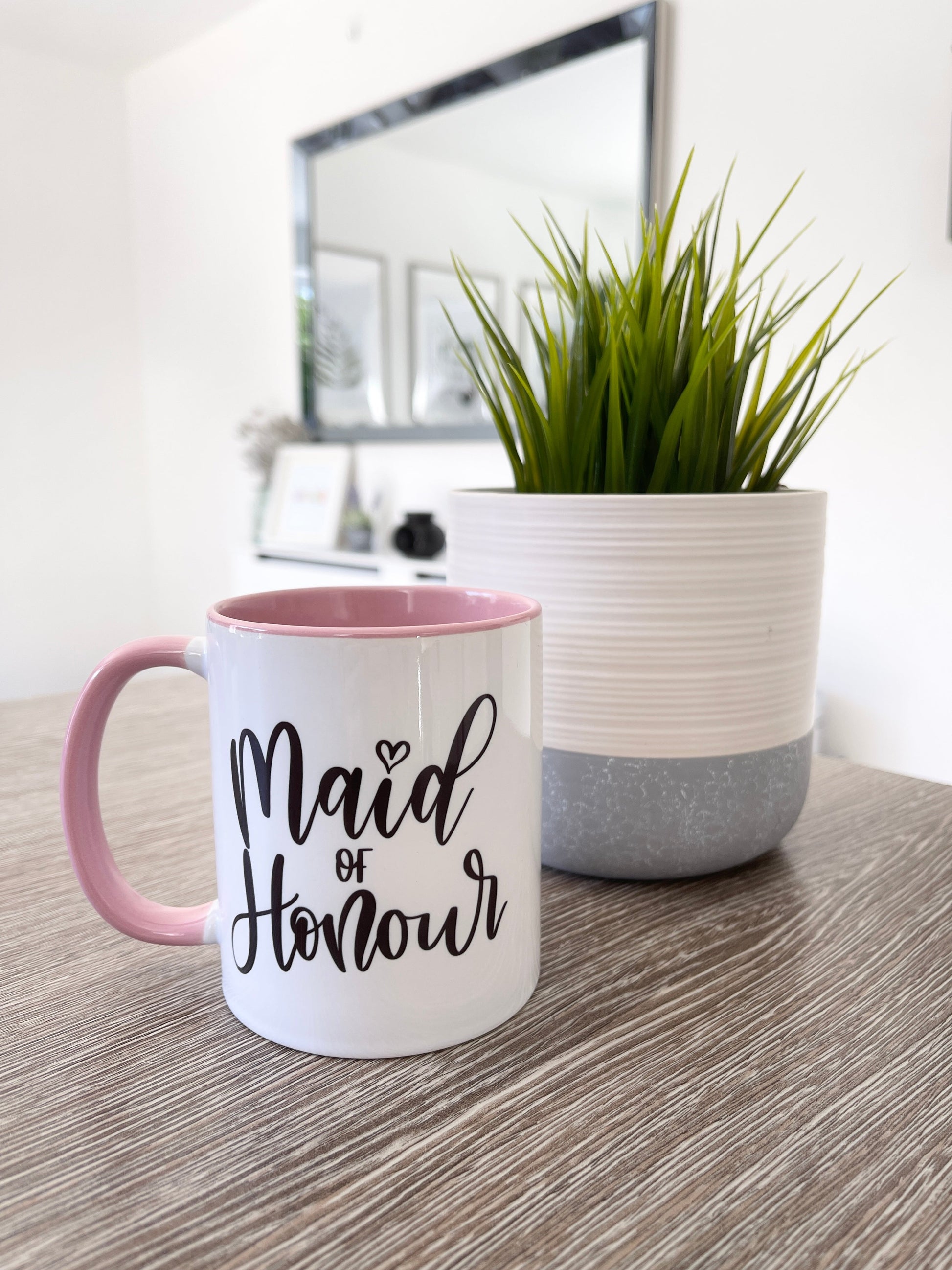 - 11oz Coloured Inner & Handle Mug – This vibrant mug offers a pop of colour with a coloured inner and handle. Available in Pink, Black, Red, and Blue finishes, this mug is perfect for those who want a little extra personality with their coffee or tea.