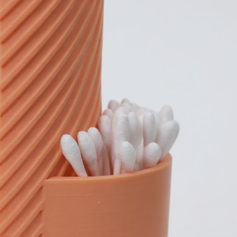 The MakeUpMate features two perfectly sized compartments to handle all your essentials. The larger section is ideal for storing taller items like creams, bottles, or cotton pads, while the smaller, separate compartment is perfect for keeping smaller bits like Q-tips, brushes, or cotton buds neatly arranged.