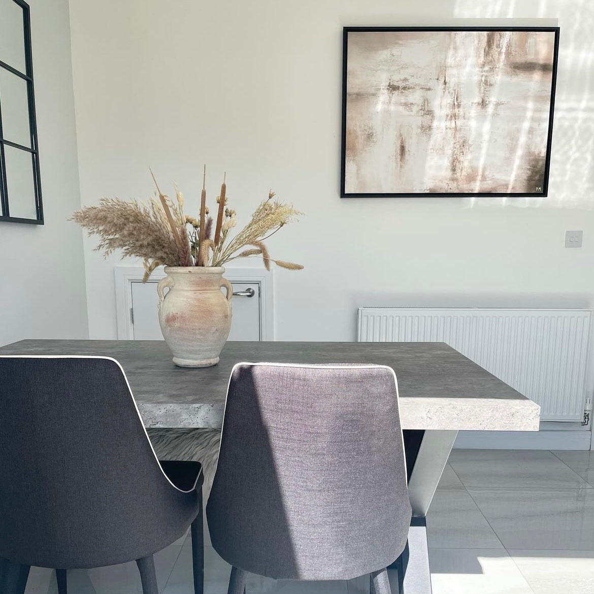 An eye-catching, abstract piece by Paige Marie. With a distinctive style and a subtle palette that plays with contrast, ‘Forte’ brings a sophisticated and modern element to your décor.