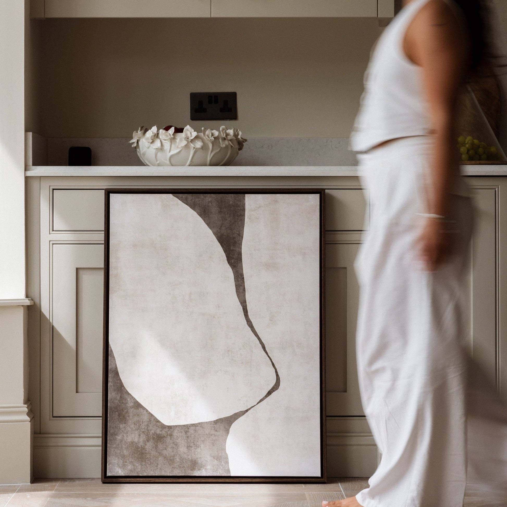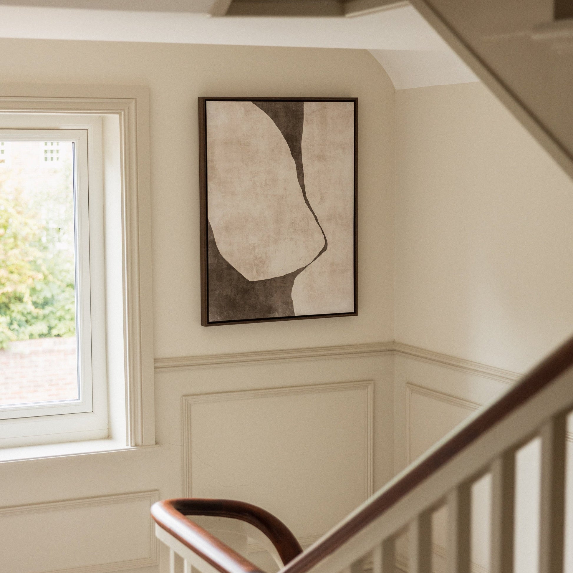 Create a stylish focal point to your space with ‘Gigi l’, composed of curvaceous flowing brown shapes, starkly contrasted against a tonal beige background. ‘Gigi’ can be hung alone or work well as a pair with either ‘Gigi ll’ or “Gigi lll’.