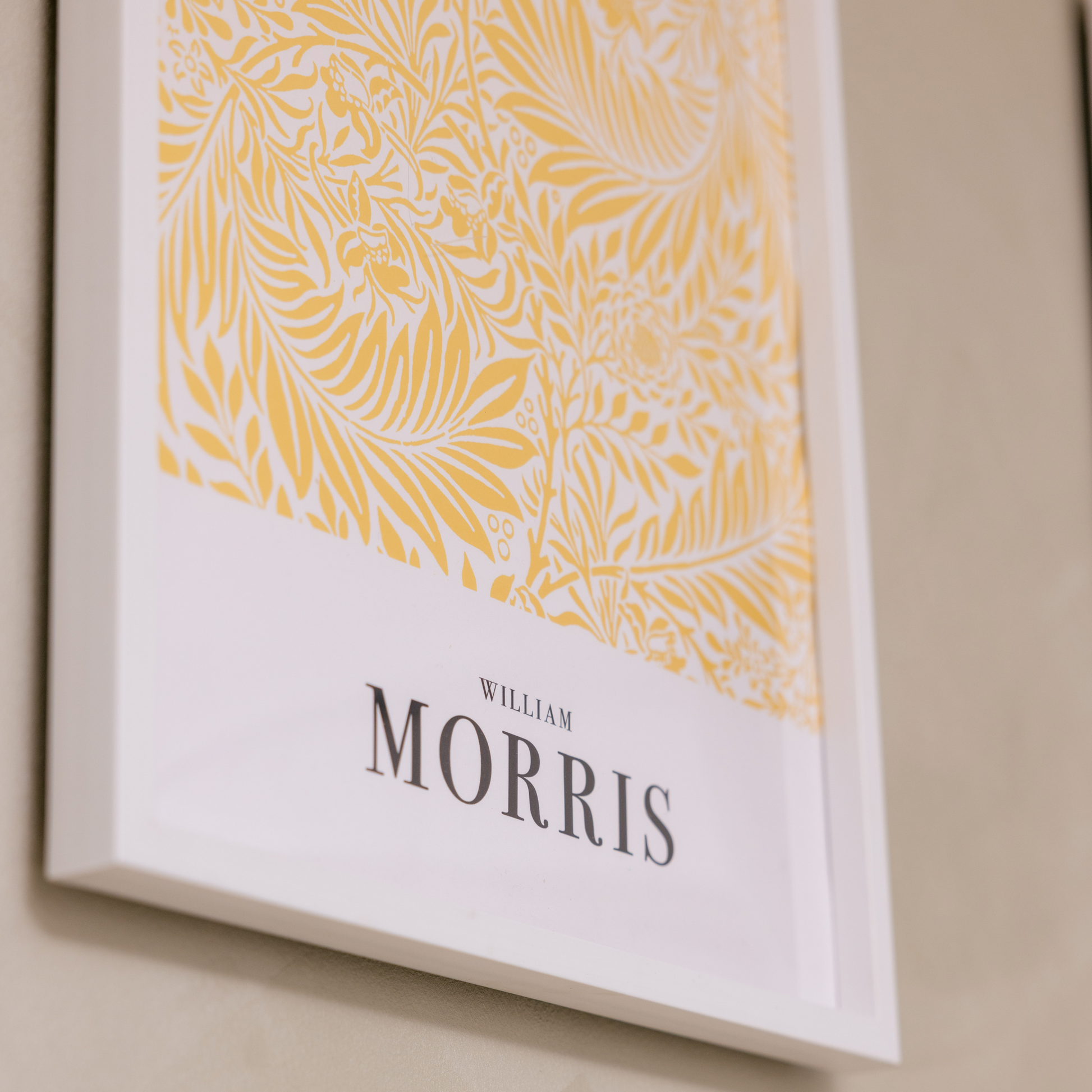 The William Morris Larkspur Print beautifully captures the grace of the larkspur flower, with intricate floral motifs set in soft, harmonious colours. Its refined design evokes a sense of serenity and timeless charm, making it an ideal addition to any room. A perfect blend of artistic craftsmanship and nature-inspired beauty, this print enhances any home with its subtle sophistication.