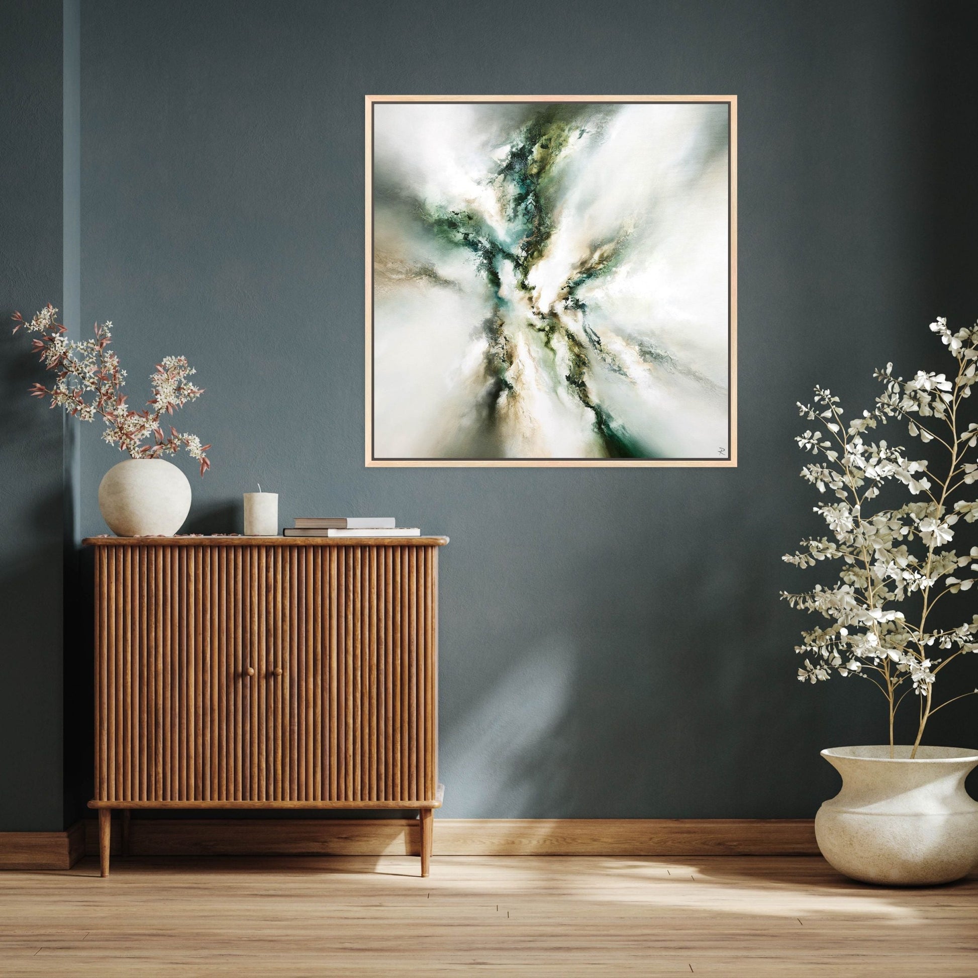 A dynamic piece by Chris and Steve Rocks, 'Majestic II' uses a palette of forest greens, umbers and greys to give a sense of style and sophistication. Effective as a stand-alone artwork, or double the impact by pairing with the complementing 'Majestic I'.