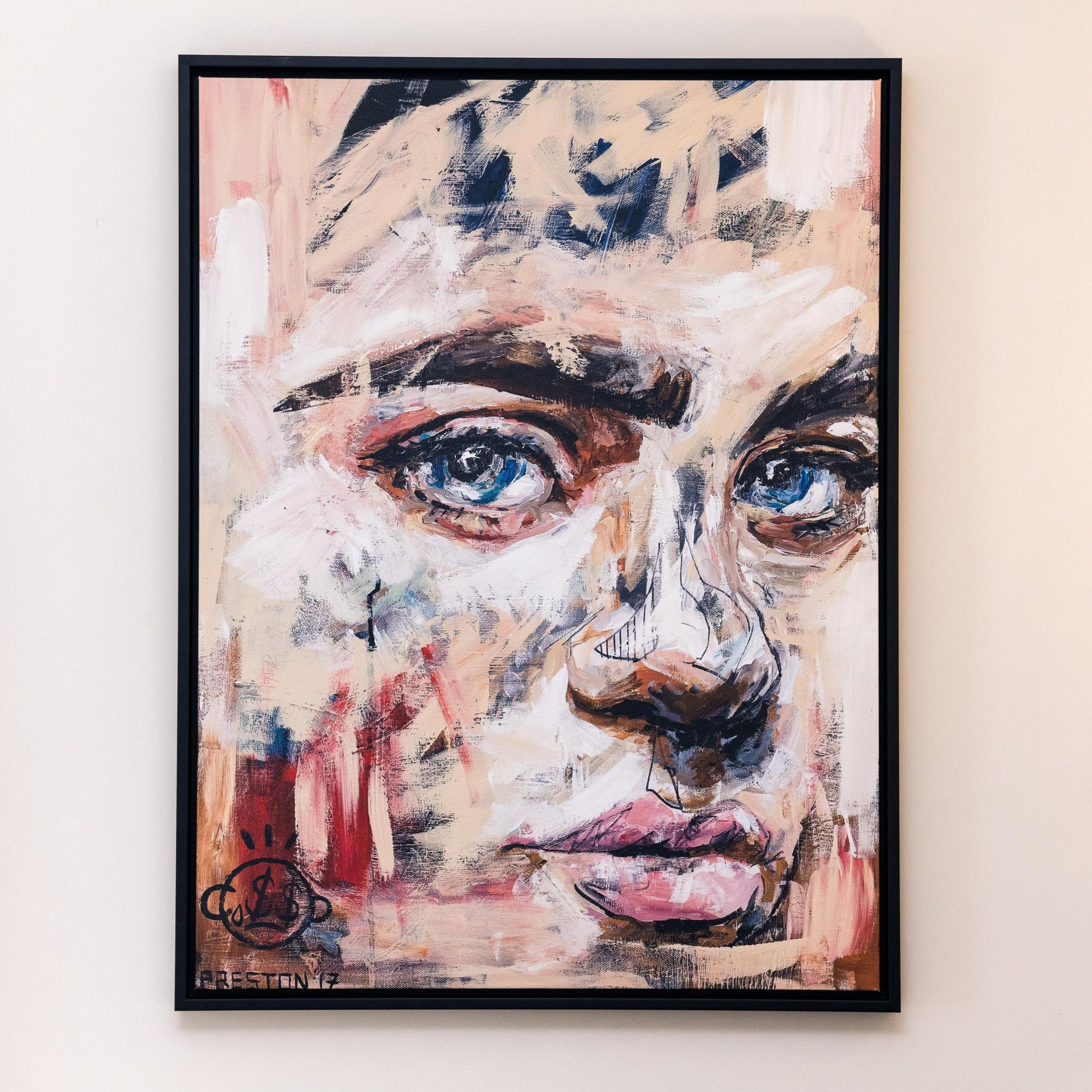 ‘Something from Nothing’, created by Nathan Preston (Preston Paperboy), is a chaos-inspired abstract painting displaying calmness within the depths of textured brush strokes. It is said that the eyes are the window to the soul & Nathan's work always delegates the story to the viewer. This strong piece would sit effortlessly in both contemporary and bohemian spaces.