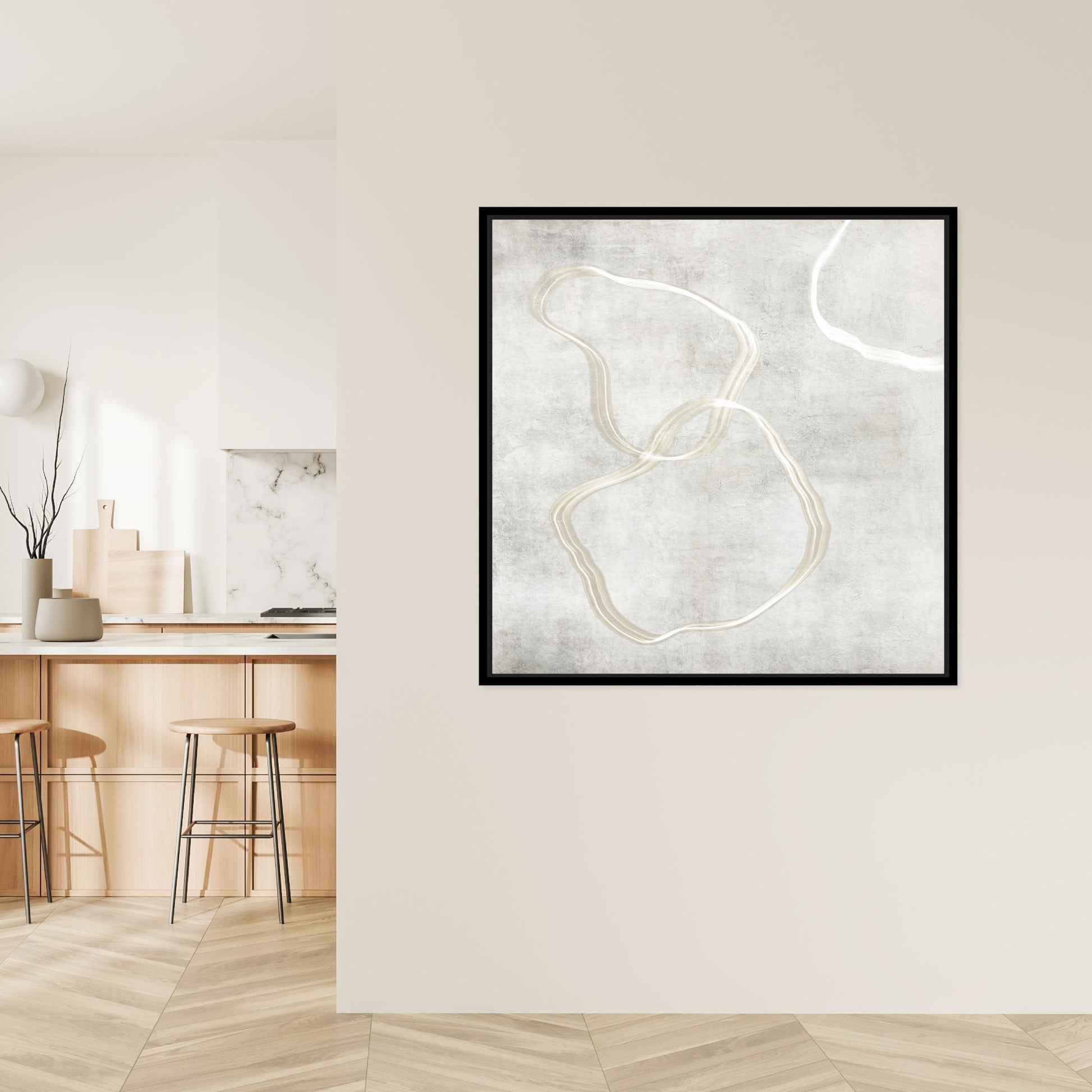 Elevate your space with ‘Stylo’- a sophisticated masterpiece featuring a tonal grey background adorned with champagne organic shaped outlines.