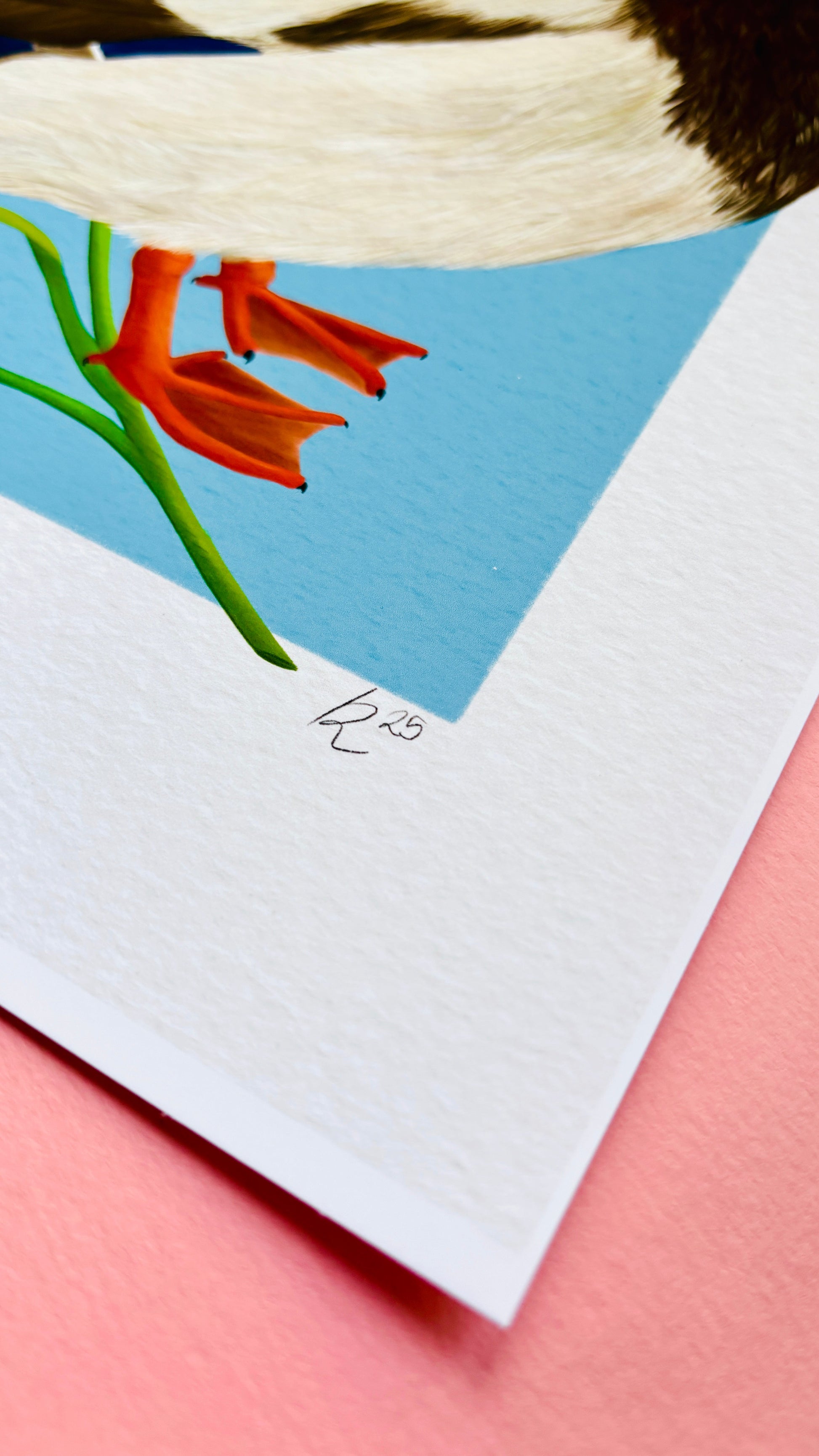 Printed on premium archival paper with rich, fade-resistant inks, every detail—from the shimmer of feathers to the serene blue backdrop—comes to life. Whether hung in a living room, office, or cozy reading nook, it adds warmth and a touch of nature to your decor.