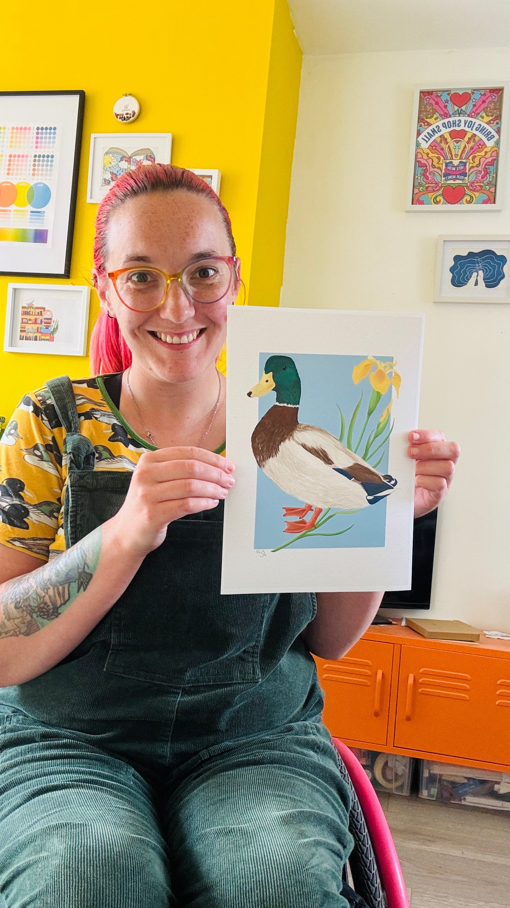 Bring the beauty of the outdoors into your home with this detailed illustration of a mallard duck and vibrant yellow iris flower. Capturing the striking colours of the male mallard alongside the vibrant yellow tones of the iris, this striking art print is perfect for bird lovers, nature lovers, and anyone who appreciates the charm of wildlife art.