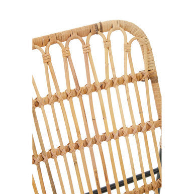 This beach house-style chair has a sloppy backrest, showcasing small bands of rattan that are tightly wrapped around the black-finished iron frame, adding stability to its minimalist style. The matching footstool will add a touch of regality to your living room and hallway seating. This modern-style chair with footstool will complement a variety of interior settings.