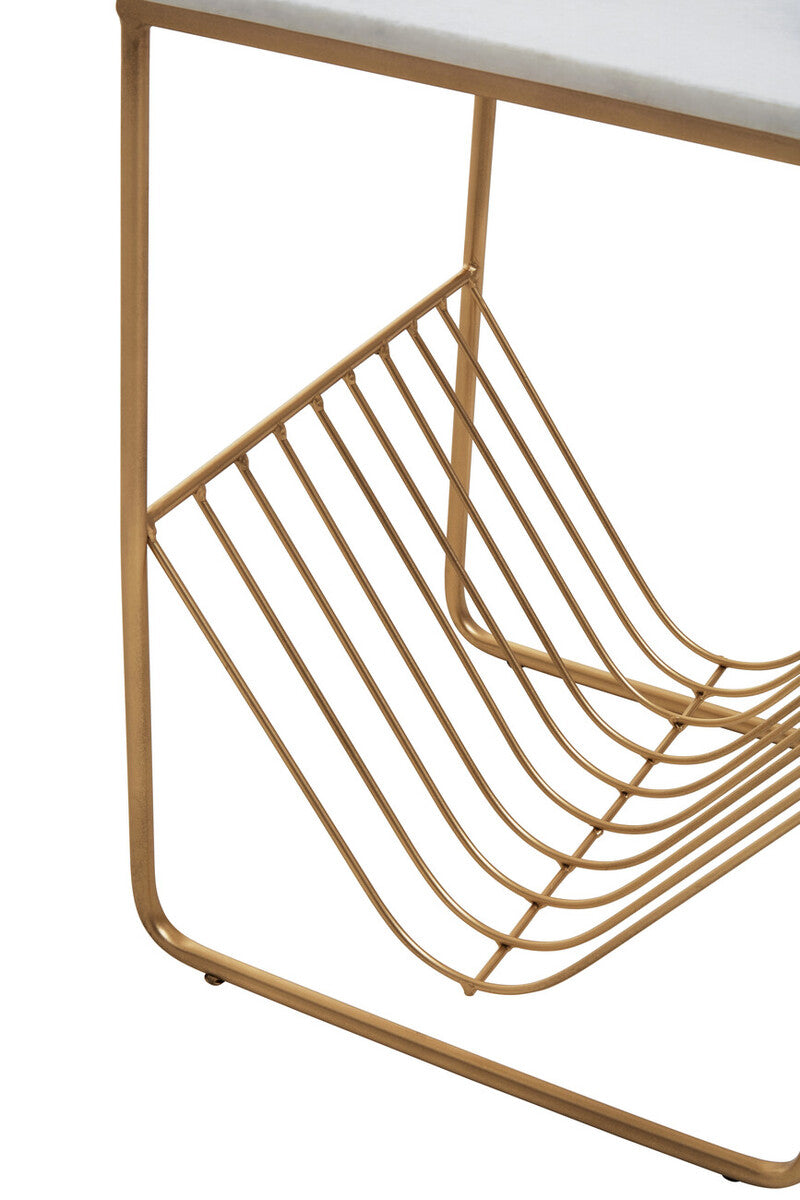 The base is crafted from durable gold powder-coated iron and designed with an open square frame that incorporates a rack-like feature for storage or display.