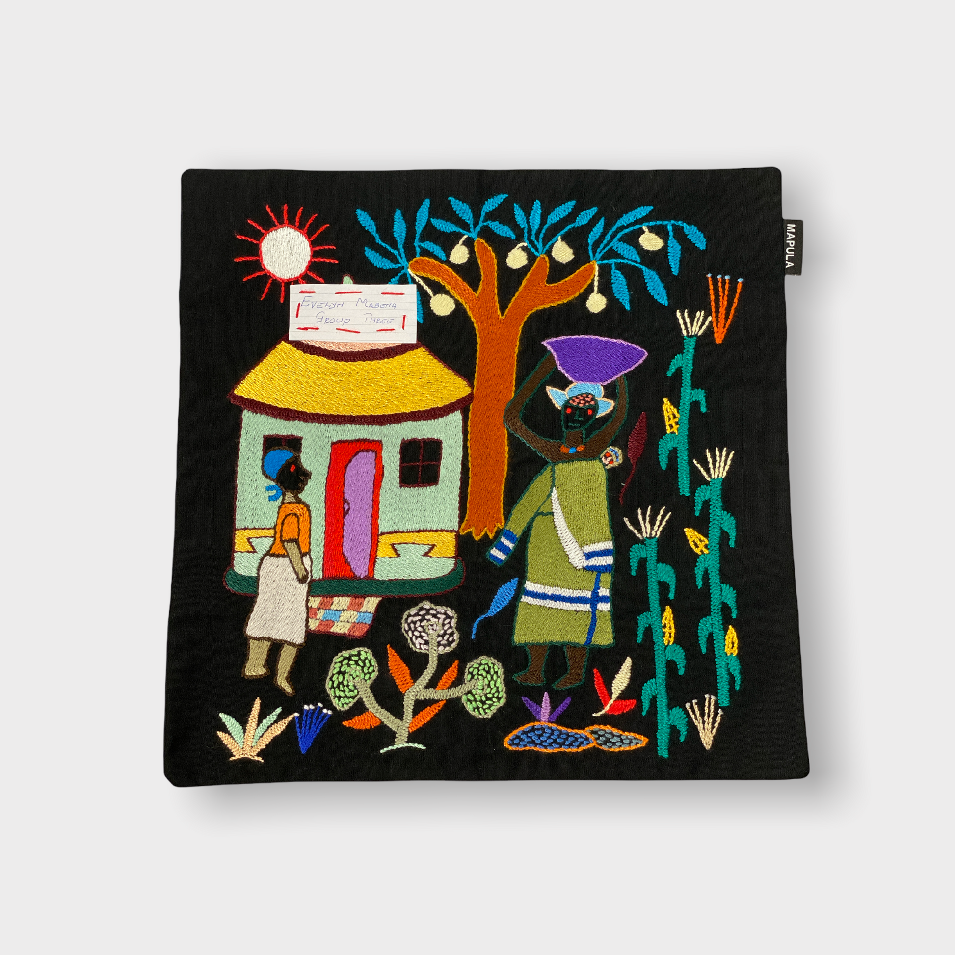 MAPULA (Mother of Rain) embroideries are original, designed and hand made by about 150 women .  Their work hangs in museums and private collections worldwide.