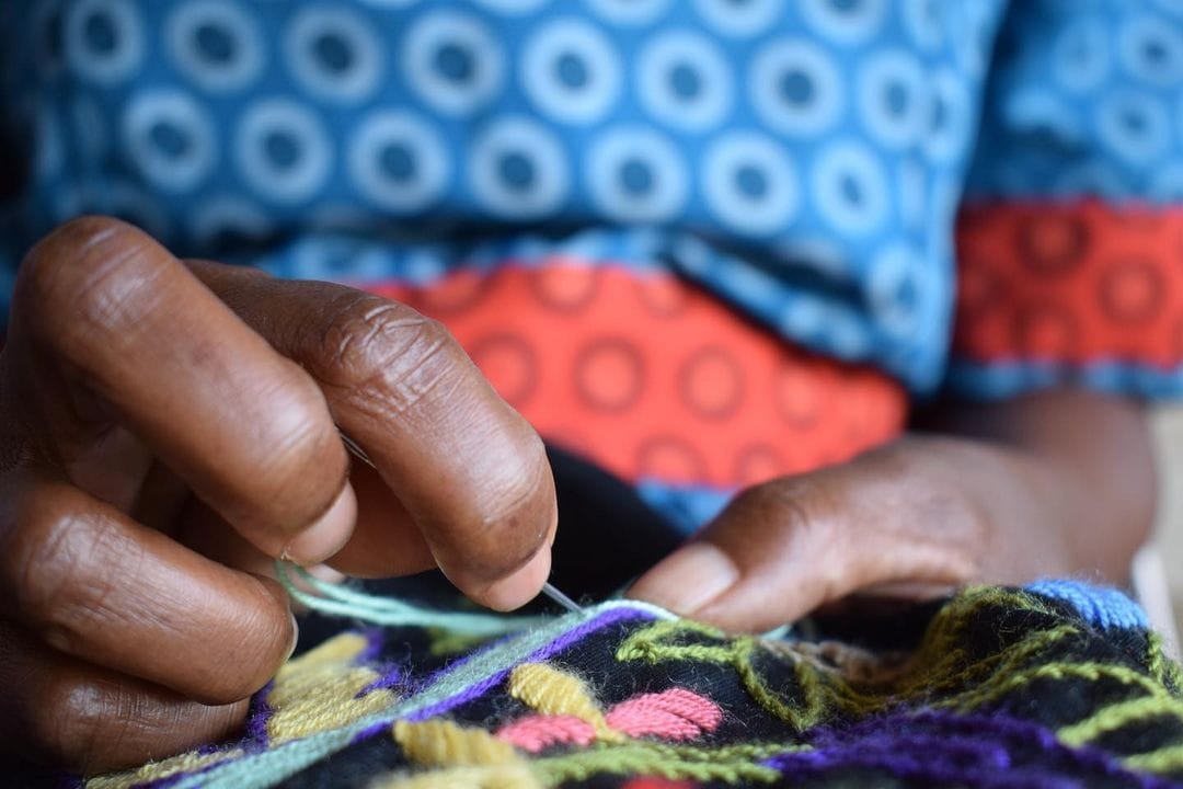 Embroiderers work at home and from a base at the DWT Nthathe Adult Education Centre with the Sisters of Mercy in the Winterveld, 40km northwest of Pretoria.