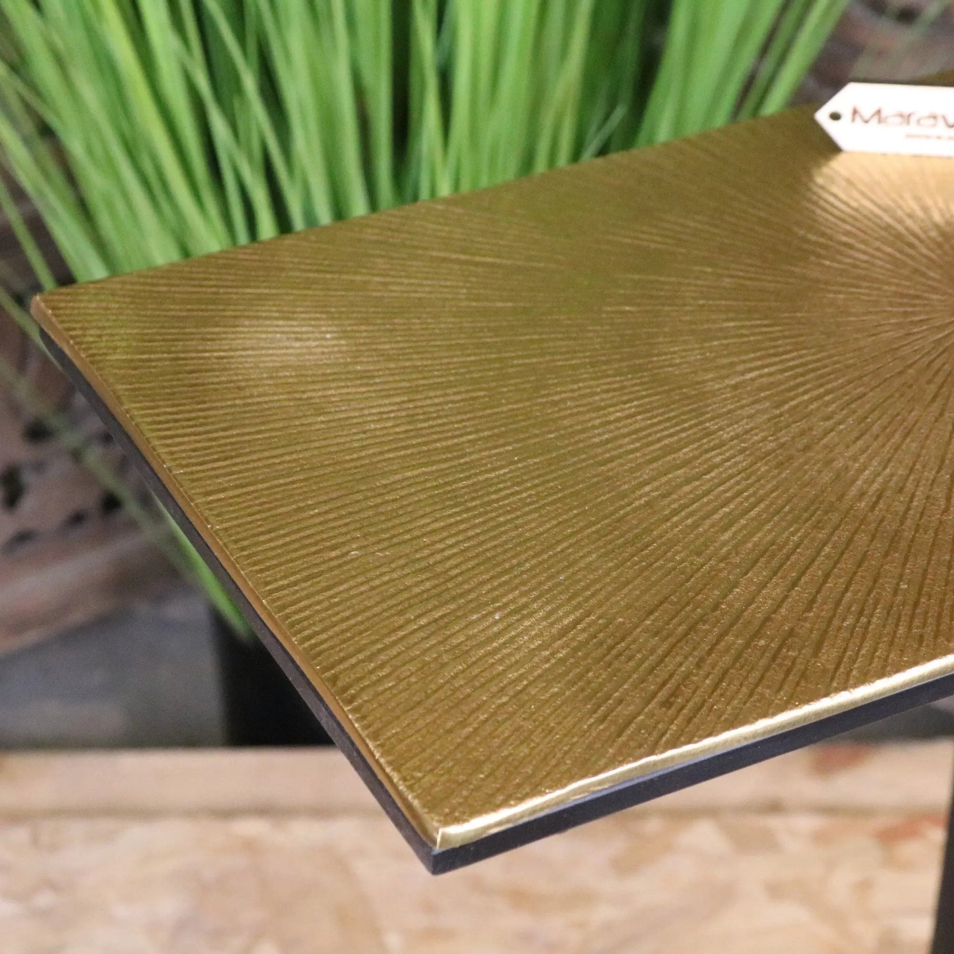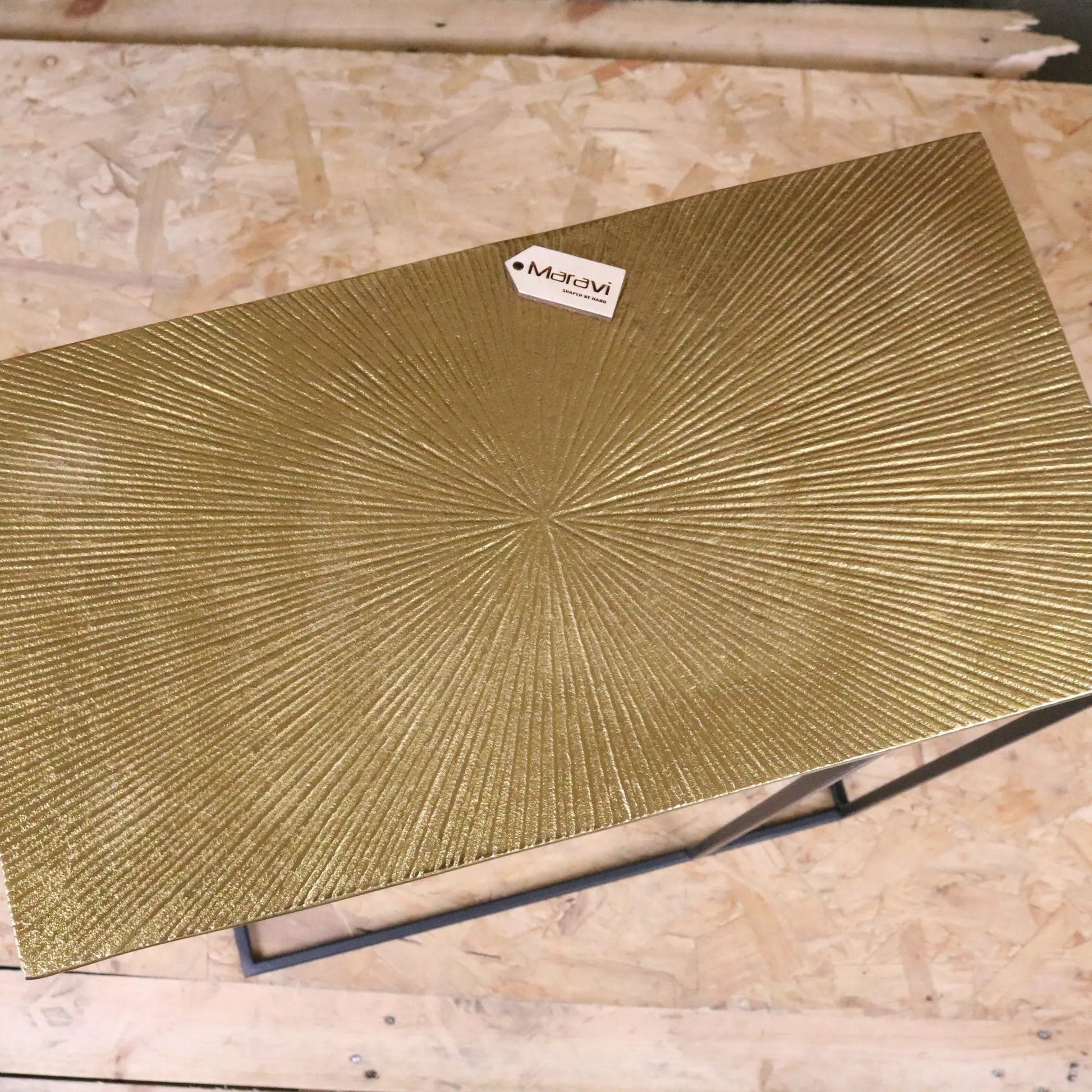 Striking Gold Finish: The rectangular tabletop features a sunburst-etched design in a warm gold tone, adding subtle texture and a luxe aesthetic.