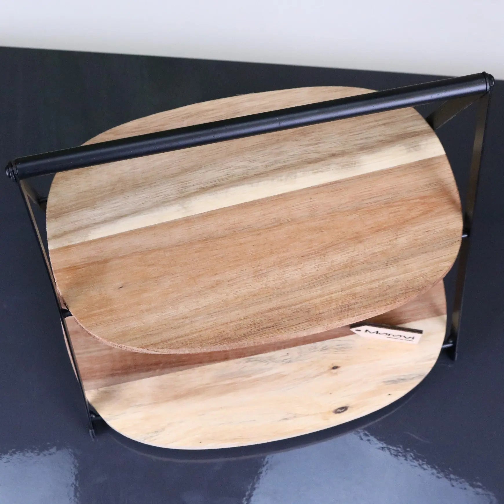 Revika 27cm 2 Tier Cake Stand – Mango Wood & Black Metal