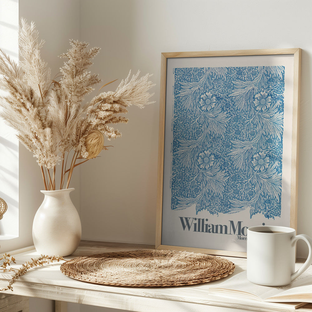 The William Morris Marigold Print is a striking celebration of botanical beauty, featuring bold, flowing marigold motifs intertwined with delicate leaves. Its rhythmic design and rich detailing create a sense of movement and depth, bringing character to any space. A true statement piece, this print adds warmth and charm to both contemporary and traditional interiors.