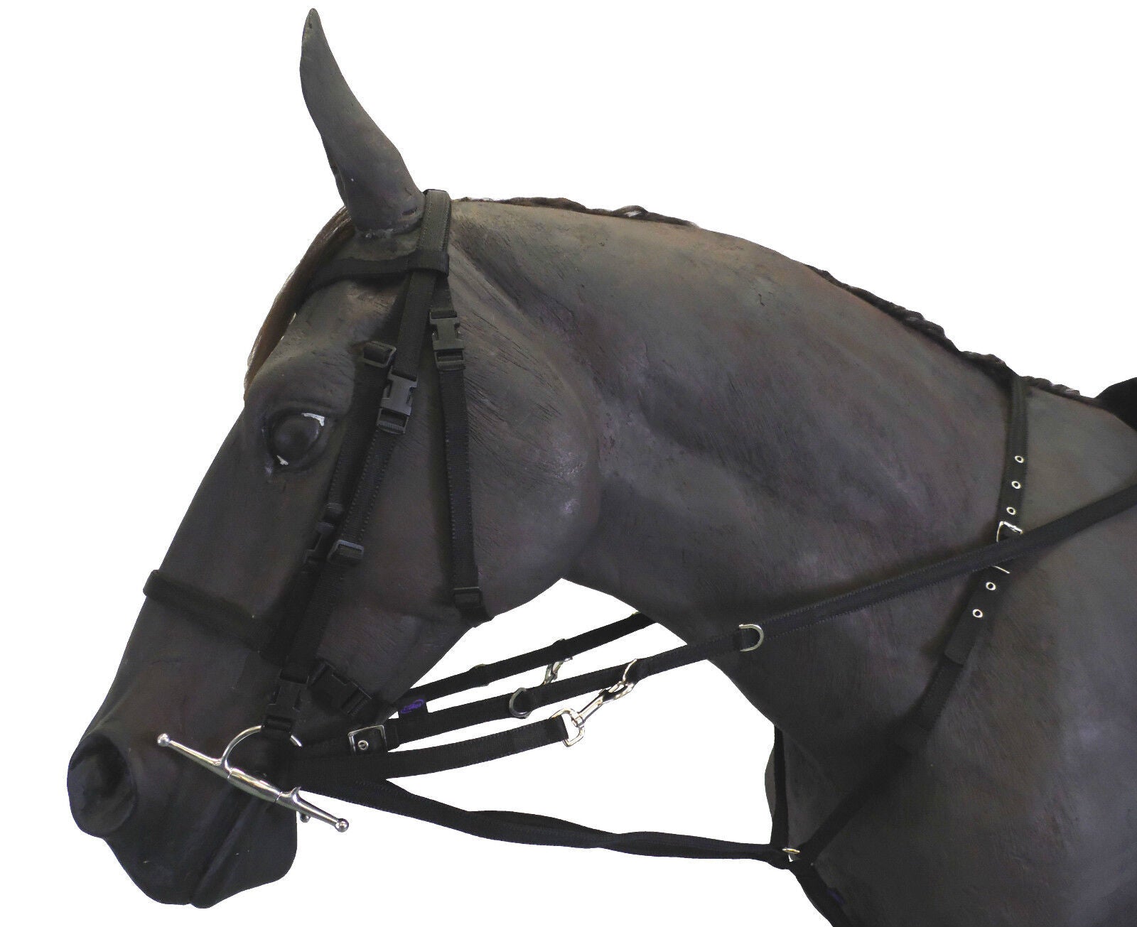 A running martingale with triggers on the ends of the runners, which attach to the dee rings on the rubber grip reins supplied.