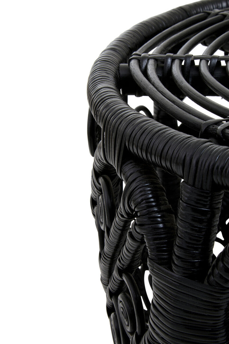 The Mataram black natural rattan table is a testament to skilled craftsmanship and natural beauty. Handwoven from rattan, its intricate swirls and spirals form a captivating design that serves as both functional furniture and a decorative centerpiece. Perfect for boho, coastal, or rustic interiors, this table brings organic charm to any room.