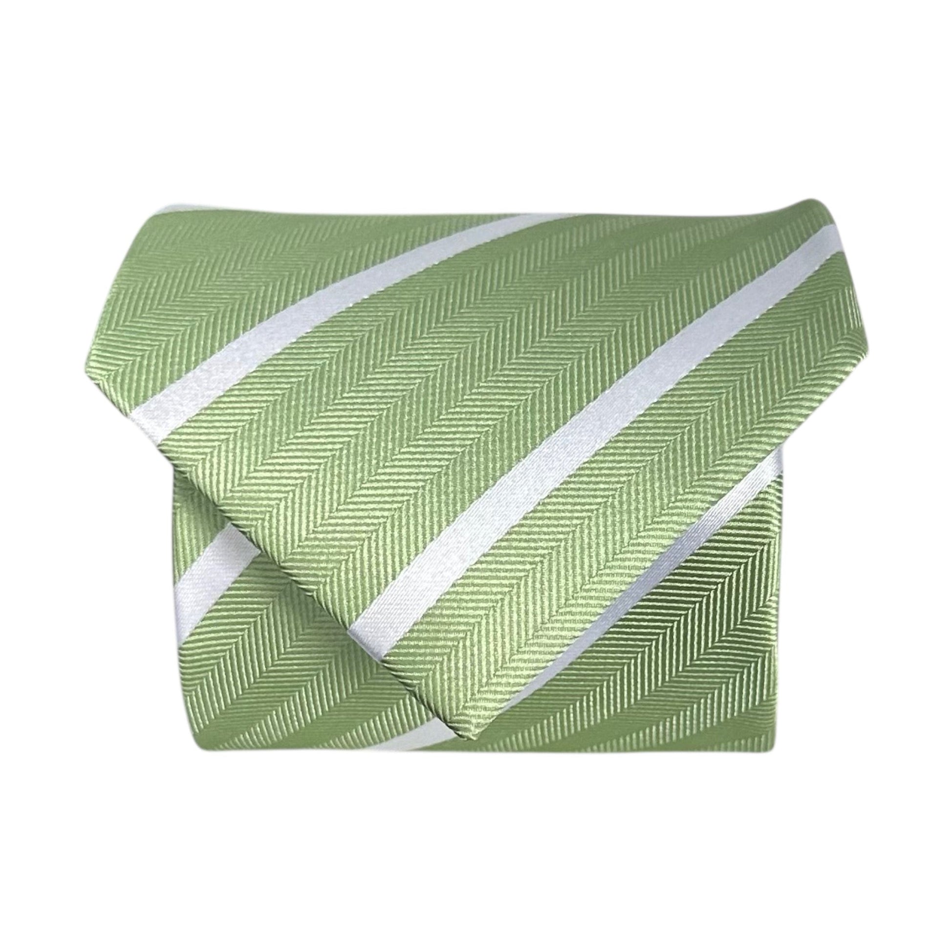 A crisp matcha green tie with a clean white single stripe for a fresh, refined look.