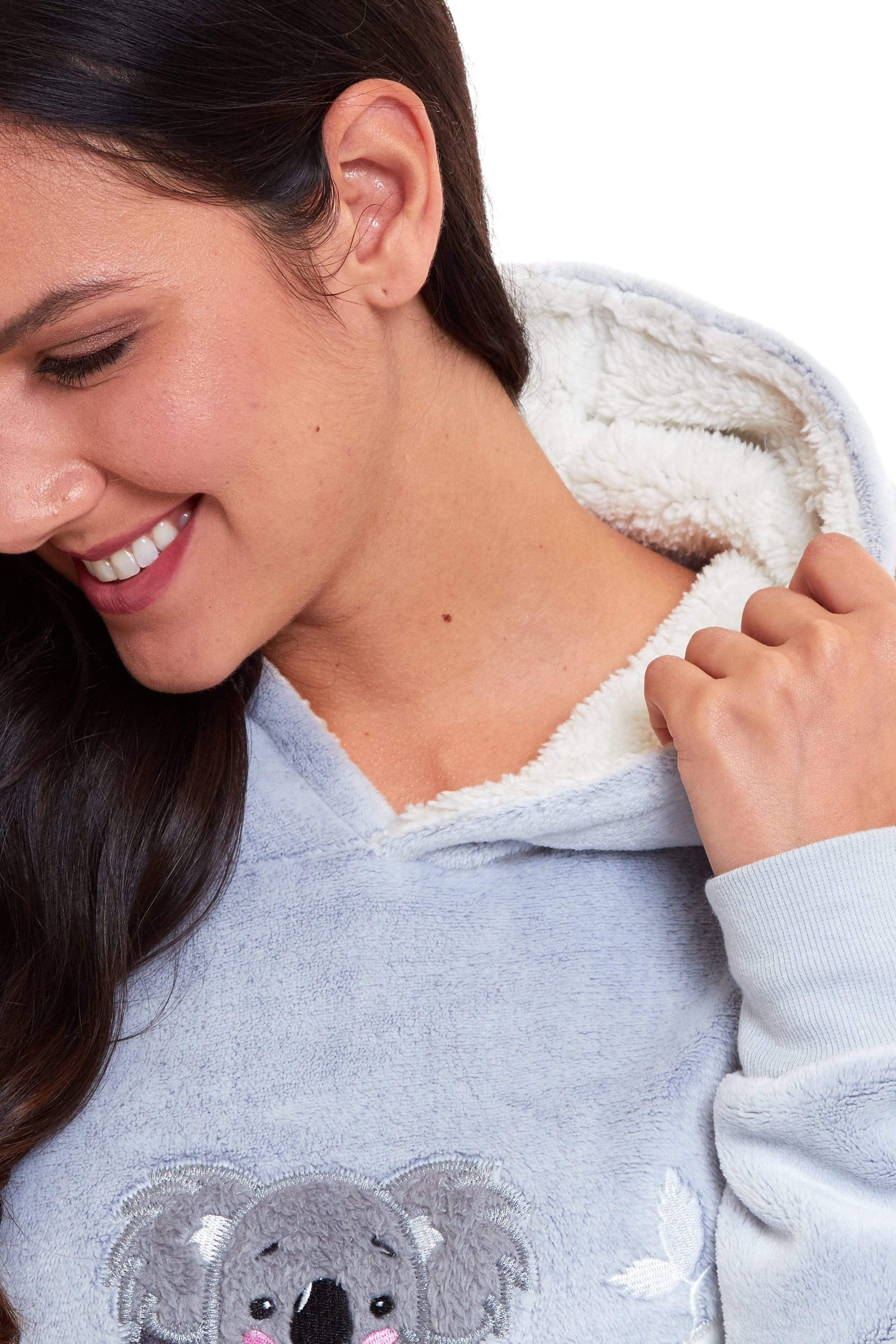 Matching Mother Daughter Koala Bear Hooded Pyjama Set Soft Plush Fleece Flannel Loungewear Nightwear for Women and Girls by Daisy Dreamer