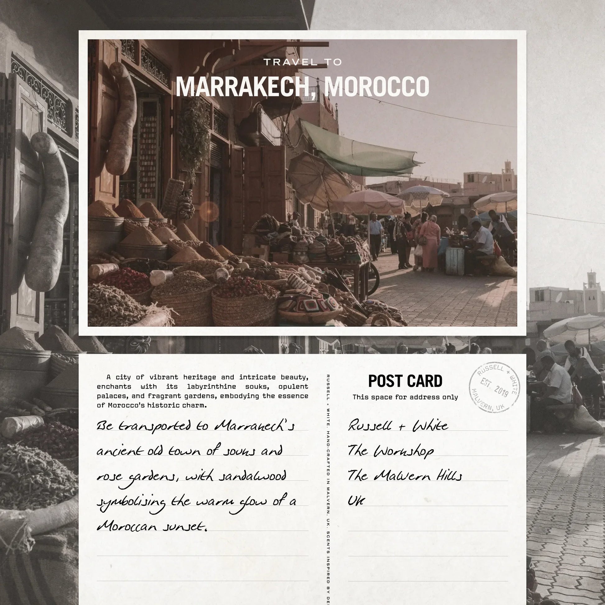 Be transported to Marrakech’s ancient old town of souks and rose gardens, with sandalwood symbolising the warm glow of a Moroccan sunset.