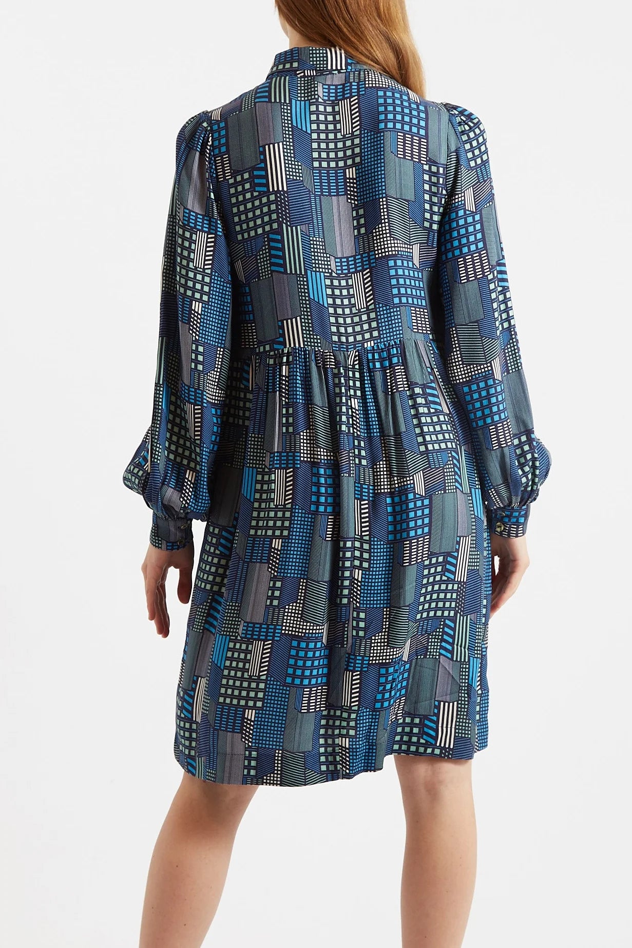 Meet Melly an easy to wear throw on mini shirt dress dress. Crafted in our unique architectural inspired, geometric print. Featuring a button through front, billowing sleeves and of course side seam pockets making it a dress you'll wear on repeat.