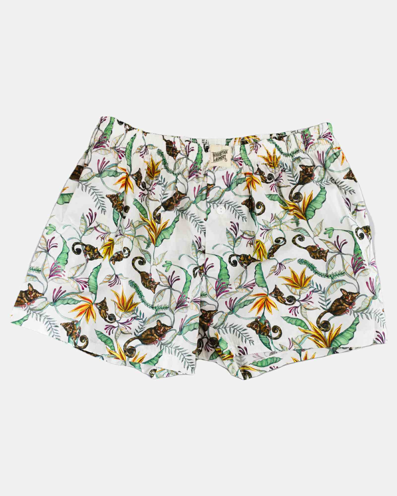 Fancy something bold and colourful? Look no further than these classic mens boxers, featuring an original, night monkeys design on a white background. Made from 100% soft organic cotton, you'll look stylish and feel great.