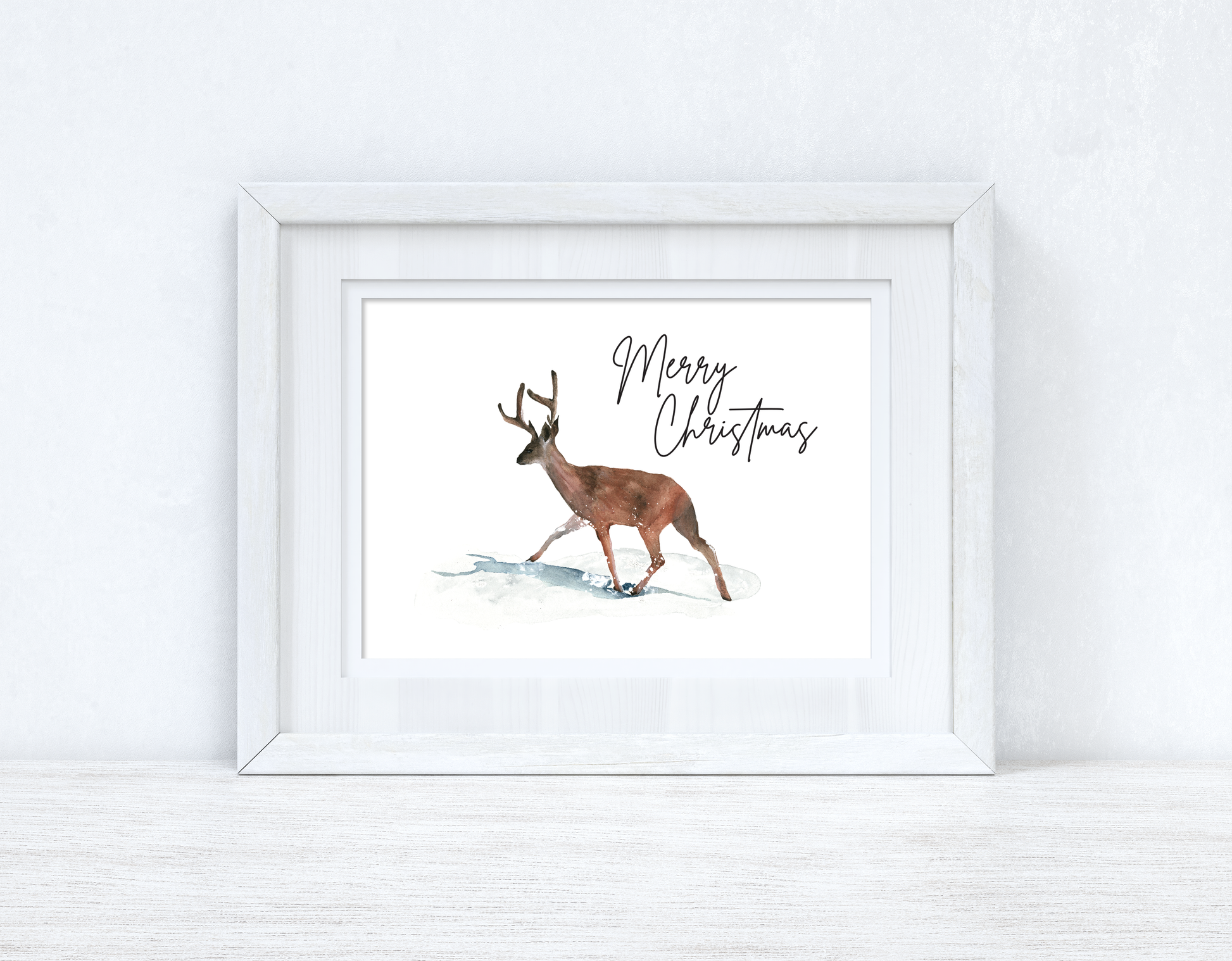 Merry Christmas Reindeer Seasonal Winter Wall Home Decor Print