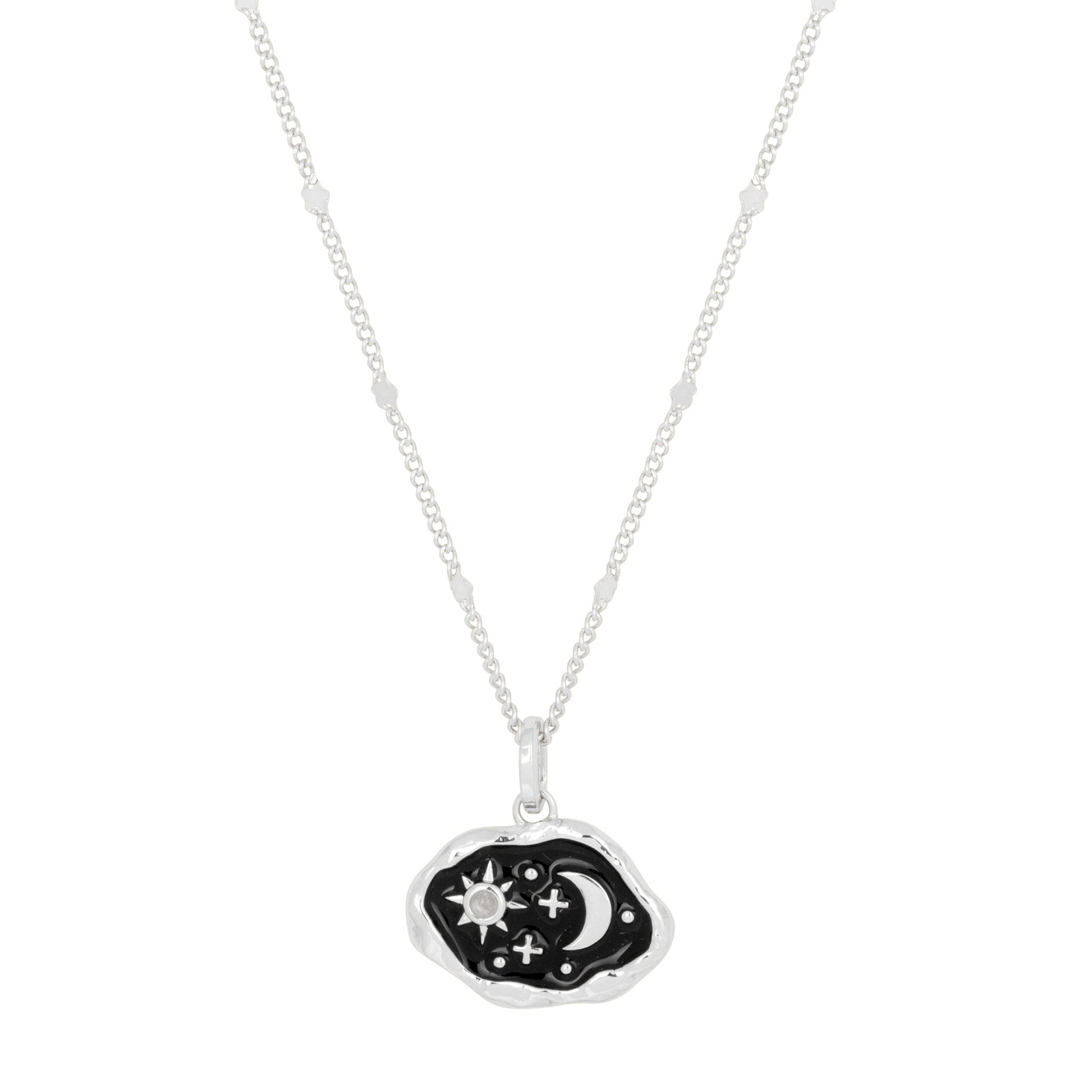 Unleash your inner late-night vibe with our Midnight Scene Rose Quartz and Black Enamel Silver Necklace. This elegant piece features a stunning black enamel design with a rose quartz set into the centre. It is perfect for adding a touch of intrigue and sophistication to any outfit.