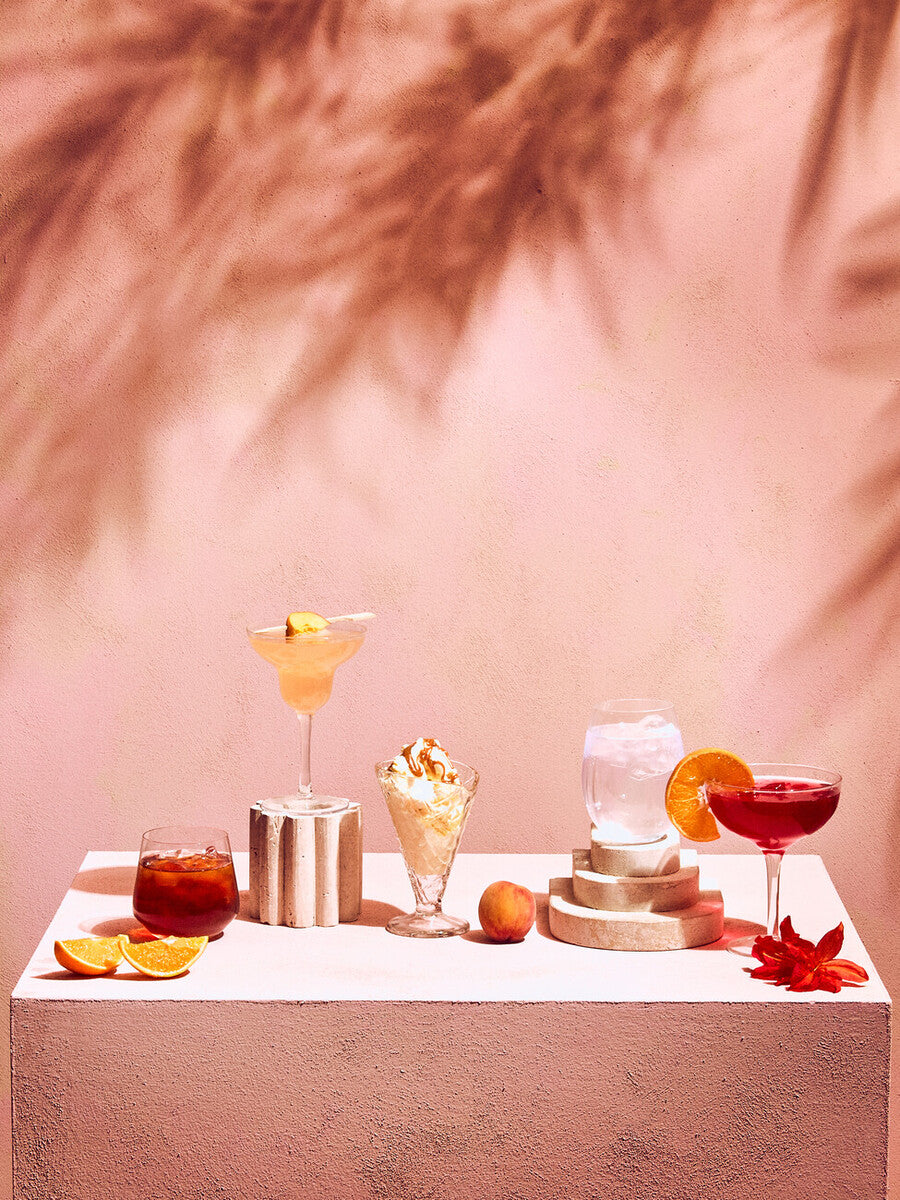 A broad bowl offers room for citrus layers, while a slim stem keeps the profile airy. The silhouette balances showstopping presence with an easy grip. Clear walls let vibrant colours, fresh fruit, and crushed ice shine.