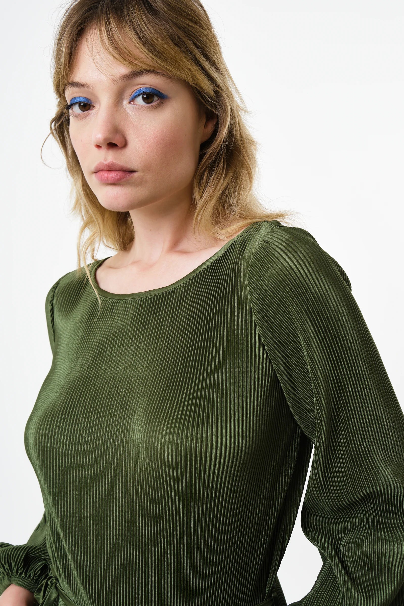Milene Pleat Long Sleeve Midi Dress - Sage