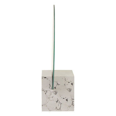 Formed into a round shape, this mirror sits on a square block that neatly holds it in place. The base has a muted white surface in circular black veining to form a faux marble pattern. Ideal to add more light, this contemporary mirror with minimal detailing and a soft accent will suit a nordic setting.