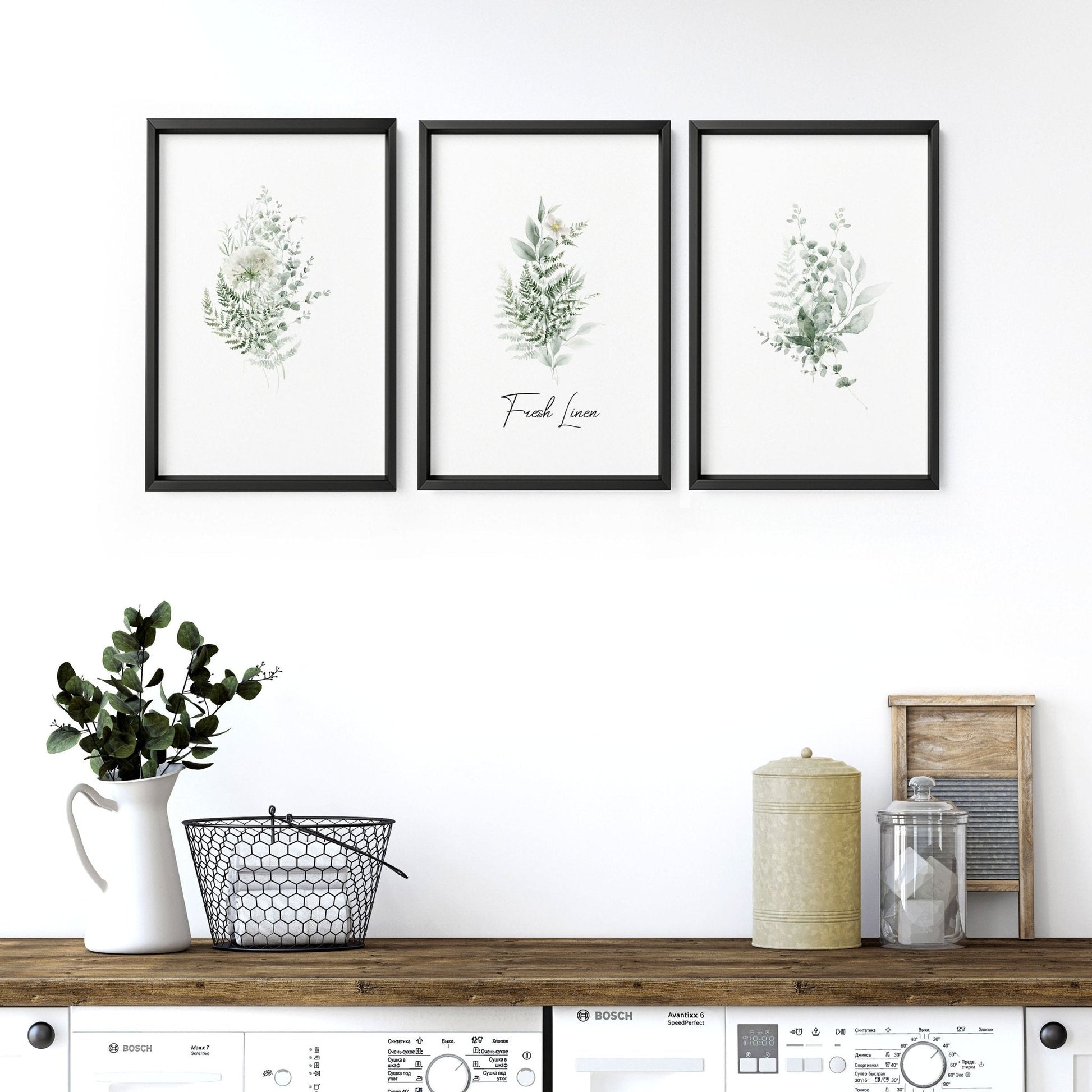 Transform your laundry space with Modern Laundry Room Ideas, featuring this Set of 3 wall art prints designed to elevate your home's aesthetic. These prints certainly bring a touch of French Country elegance, rustic charm with a sophisticated modern twist.