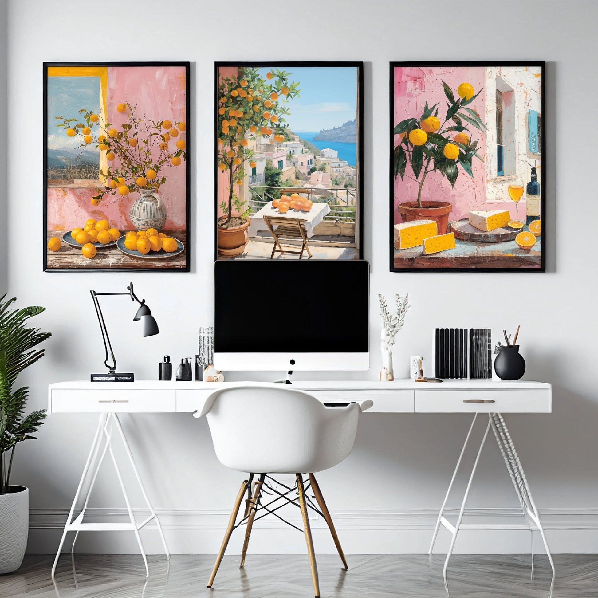 Act now and redefine your office aesthetic with these artful pieces. Not only do they enhance your decor, but they also tell a story of culture and beauty, ideal for any professional setting. Incorporate this Set of 3 Italian Lifestyle Wall Art Prints to boost your office decor effortlessly.