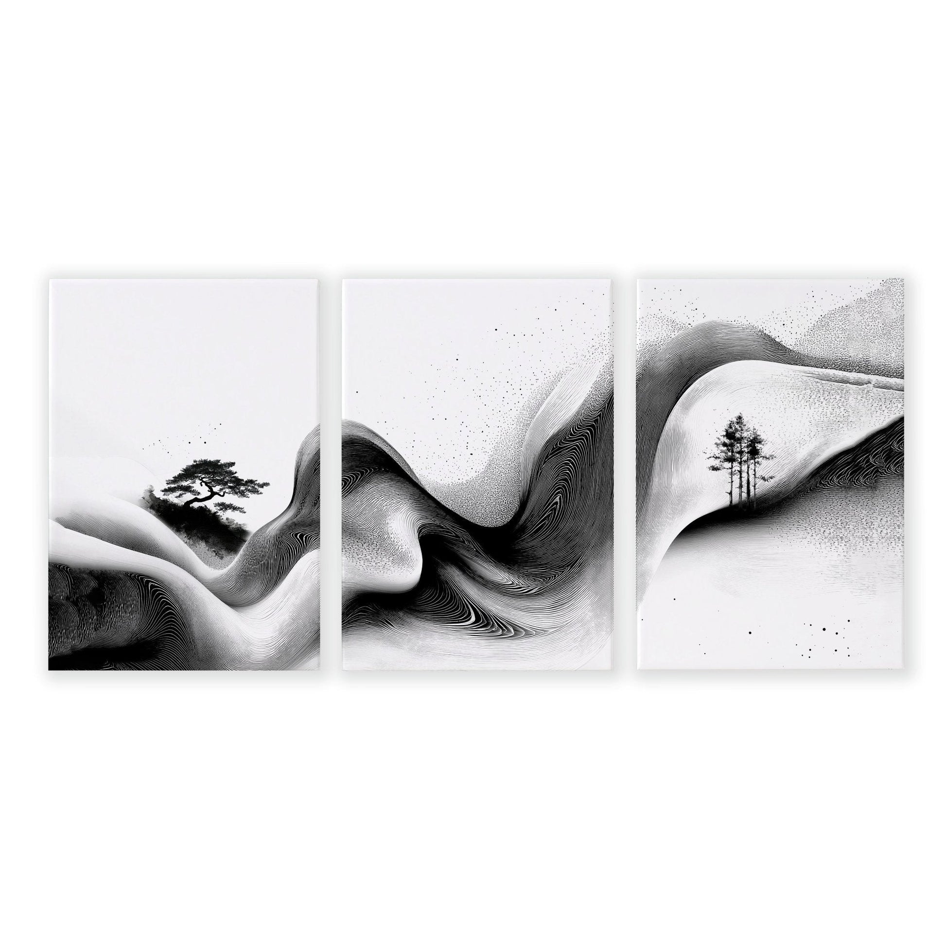 Transform your living space with our Modern Wall Art Living Room set, an exquisite trio of prints that combines the timeless elegance of Asian-inspired design with the striking contrast of a black and white gallery palette. Picture these captivating Set of 3 Asian Inspired Wall Art Prints gracing your walls, bringing a serene and sophisticated ambience to your home. The monochrome hues seamlessly blend with any colour scheme, elevating your decor to a level of understated elegance, while the intricate Asian motifs inspire a sense of cultural richness and tranquillity.