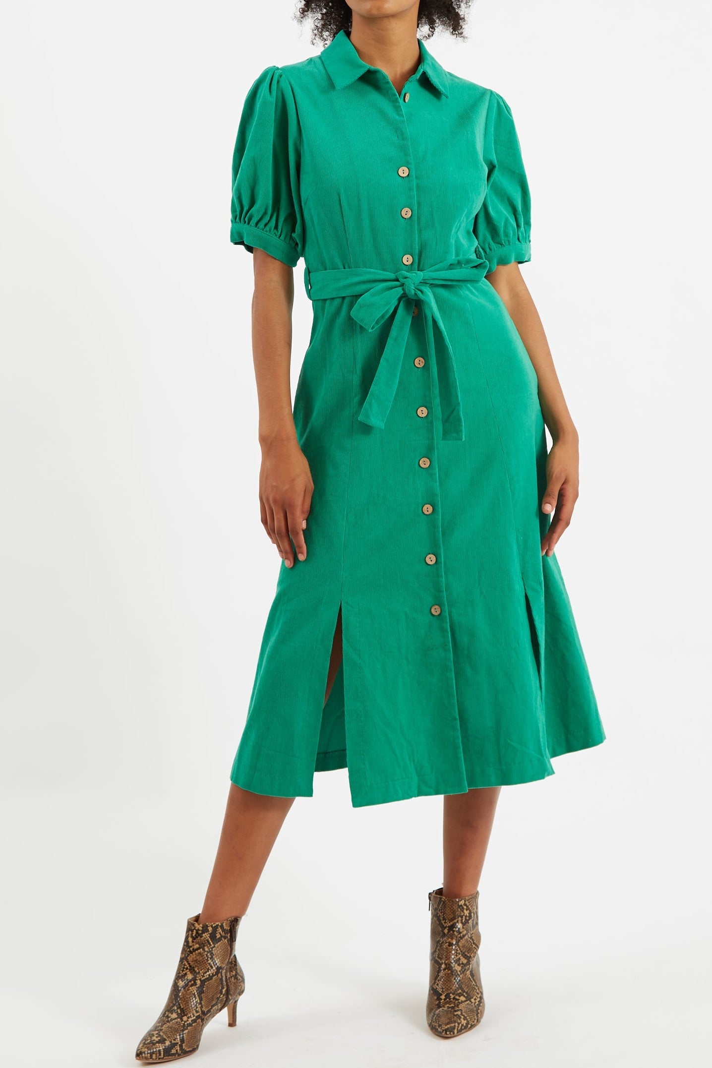 There's certainly something about Mollie! Our reimagined midi shirt dress crafted in a heavy corduroy with plenty of stretch for ease and comfort. Features statement puff sleeves front skirt slits and a self adjusting self belt. Looks equally good paired with boots or trainers.