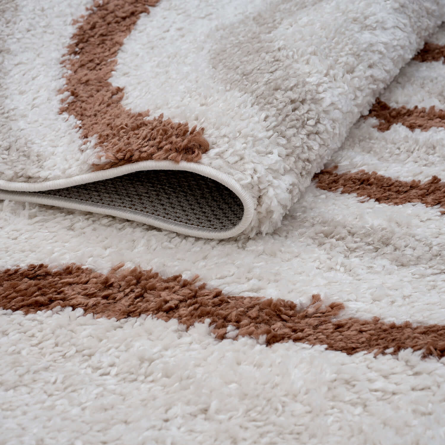 Bring warmth and contemporary style to your home with the Moodi Shaggy Cream/Terra Sunhaze Rug. Featuring bold cream and terra stripes on a plush 30 mm pile, this rug adds both visual interest and soft comfort underfoot.