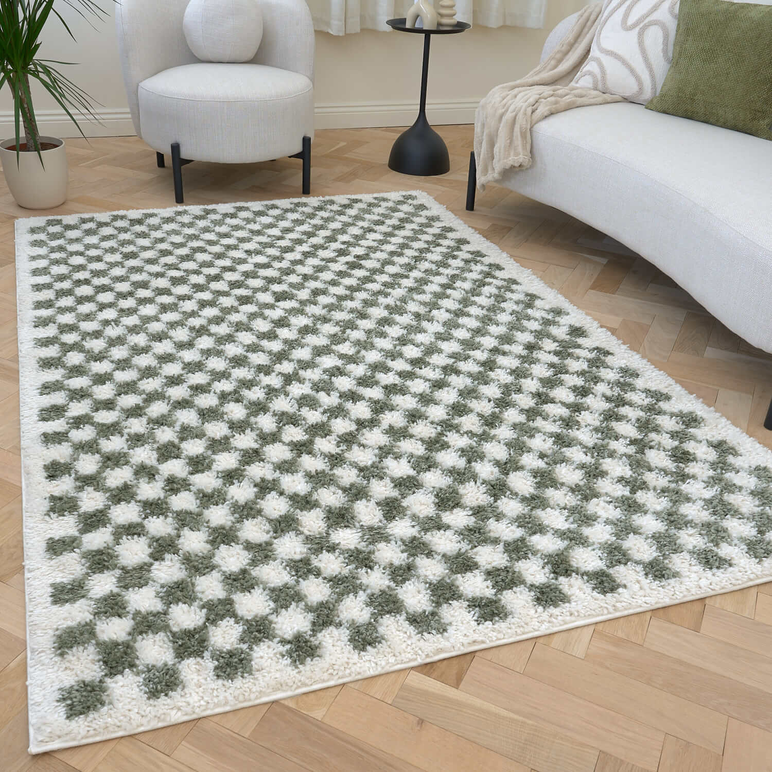 Bring texture and warmth to your home with the Moodi Shaggy Green Lunel Rug. Its vibrant green tartan pattern and thick 30 mm pile add cosy comfort and a classic touch, making it a standout piece in any room.