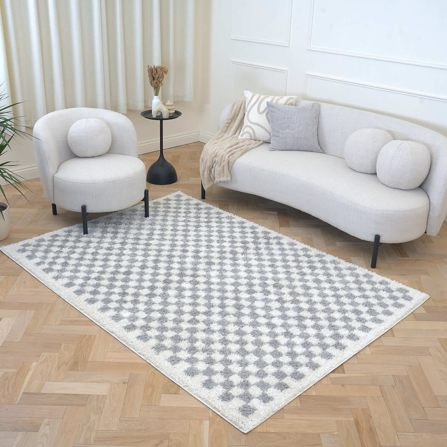 Introduce cosy style and classic patterning to your interiors with the Moodi Shaggy Grey Mulberry Rug. Its rich grey tartan design and thick 30 mm pile create a soft, inviting surface that adds texture and warmth to any room.