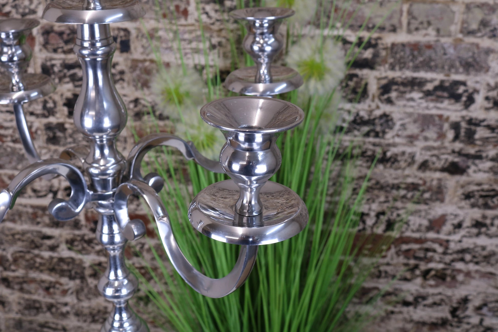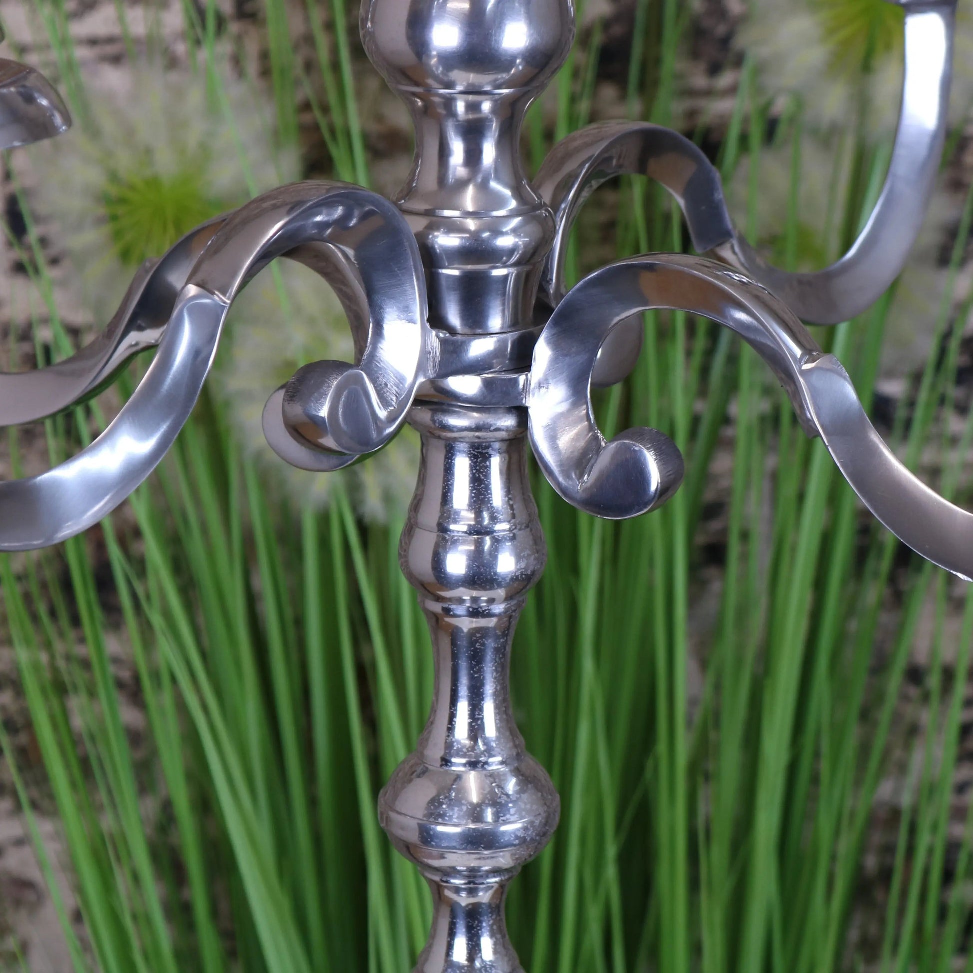 Polished Silver Finish: Crafted from premium materials, the candelabra boasts a polished silver finish with a mirror-like quality. This luxurious finish enhances the piece’s classic design, making it suitable for both contemporary and traditional settings.