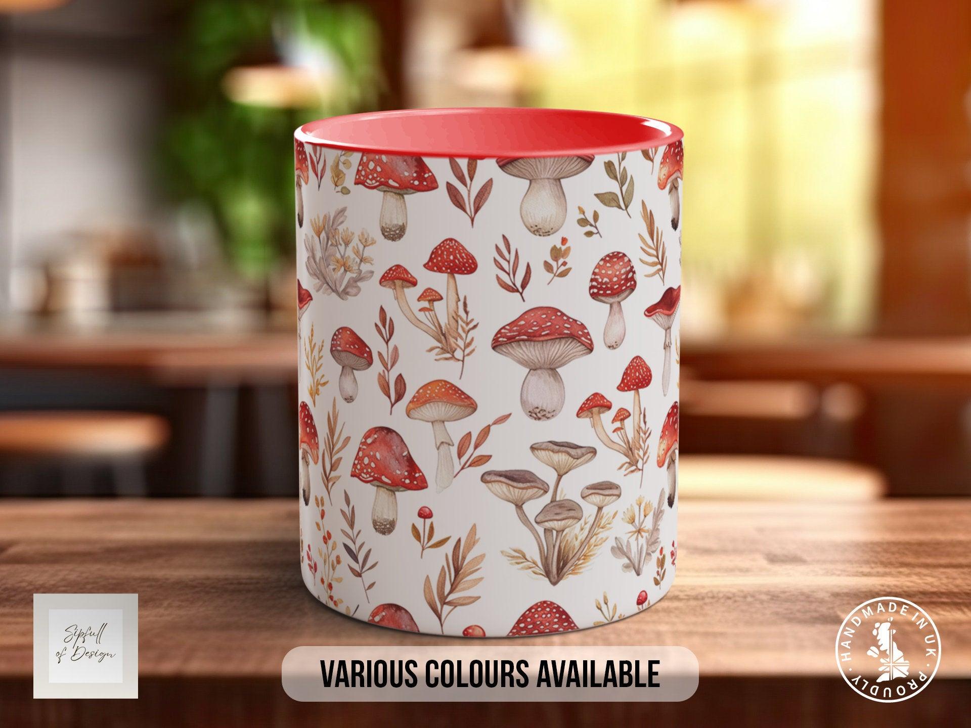The Mushroom Garden Pattern Full Wrap Coloured Art Mug - Design 10 brings a charming touch of the forest to your daily routine. This beautifully handmade mug features a full wrap print of a unique mushroom garden design, capturing the warmth and whimsy of nature in every sip. Crafted using premium ORCA stock, it offers durability for everyday use while maintaining a vibrant finish. With a generous 11oz capacity, it’s perfect for your favourite hot drink and comes in nine distinct colour variations to complement your style. The mug is dishwasher safe for up to 800 wash cycles at 45°C, ensuring its artwork stays bright and beautiful over time. As with all our mugs, it includes a 1-Year Print Guarantee for your peace of mind.