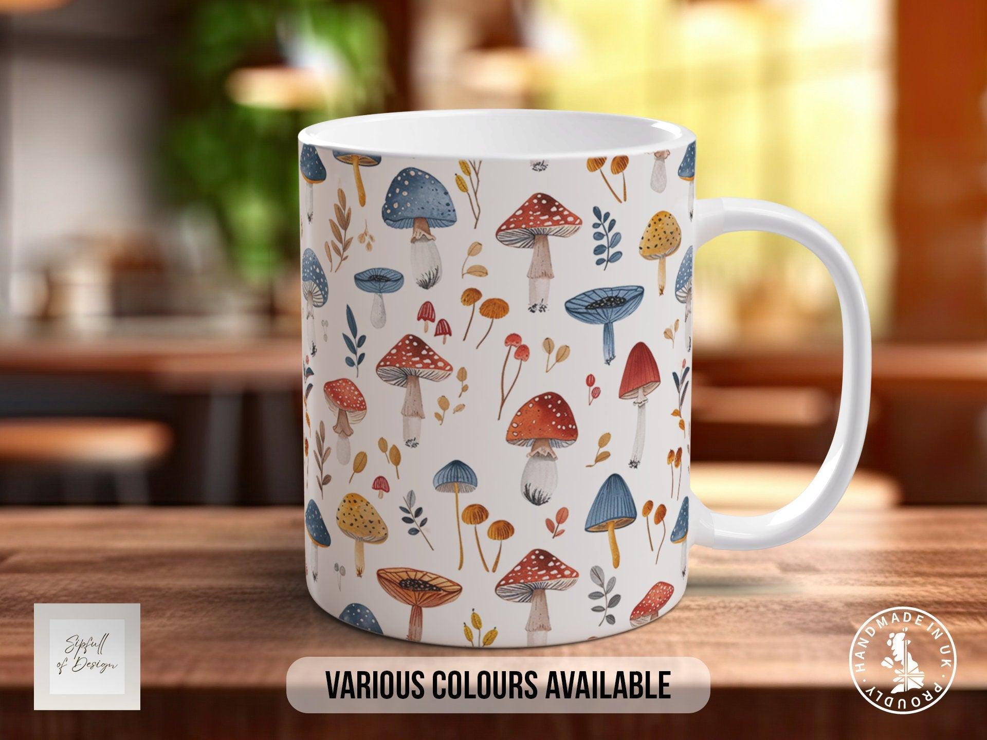 The Mushroom Garden Pattern Full Wrap Coloured Art Mug - Design 8 celebrates the charm of the forest with a beautifully detailed, full wrap design inspired by nature’s magic. Handmade to order, this 11oz mug is crafted on premium ORCA stock and decorated with a rich, coloured print that surrounds the entire surface, making it a truly special piece to enjoy with your favourite hot drink. Each mug is dishwasher resistant up to 800 wash cycles at 45°C, ensuring the design remains vibrant and durable through daily use. For added reassurance, this mug comes with a 1-Year Print Guarantee, reflecting our confidence in its quality and longevity.