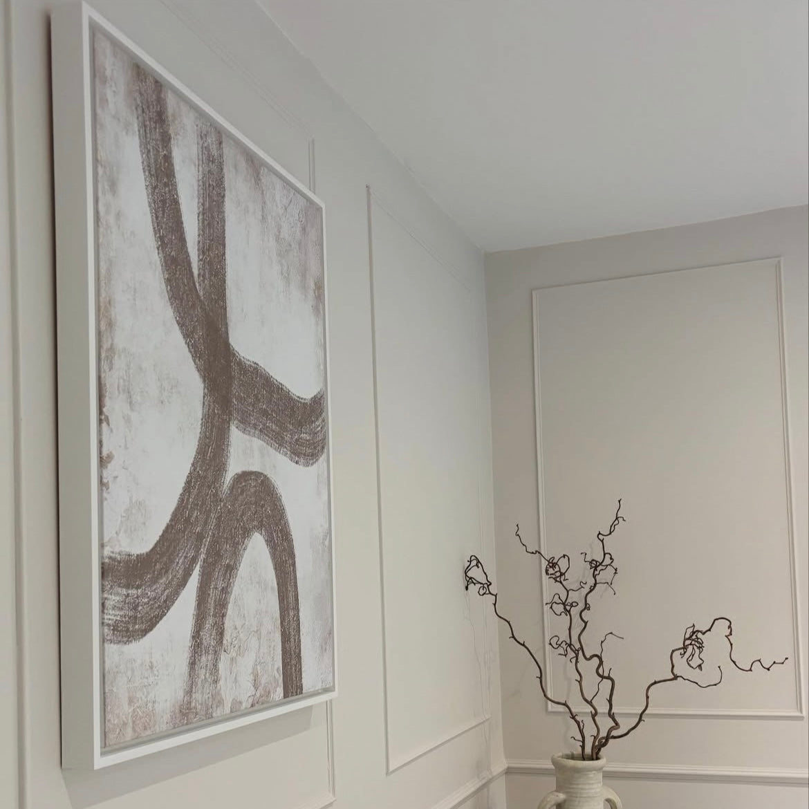 Bring a minimalist vibe to your home with ‘Myro l’, featuring bold brush mark sweeps and tones of white, stone greys and taupe. ‘Myro l’ is the perfect statement piece, either hung alone, as a pair with either ‘Myro ll’ or ‘Myro lll’ or all three displayed together as a triptych.