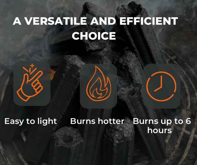 Get the unparalleled heat and cooking quality of charcoal without a hint of smoke with these briquettes. Being totally smoke-free makes this charcoal perfect for both indoor and outdoor kitchens, making the cooking experience more versatile and comfortable, with no nasty smells or fumes.