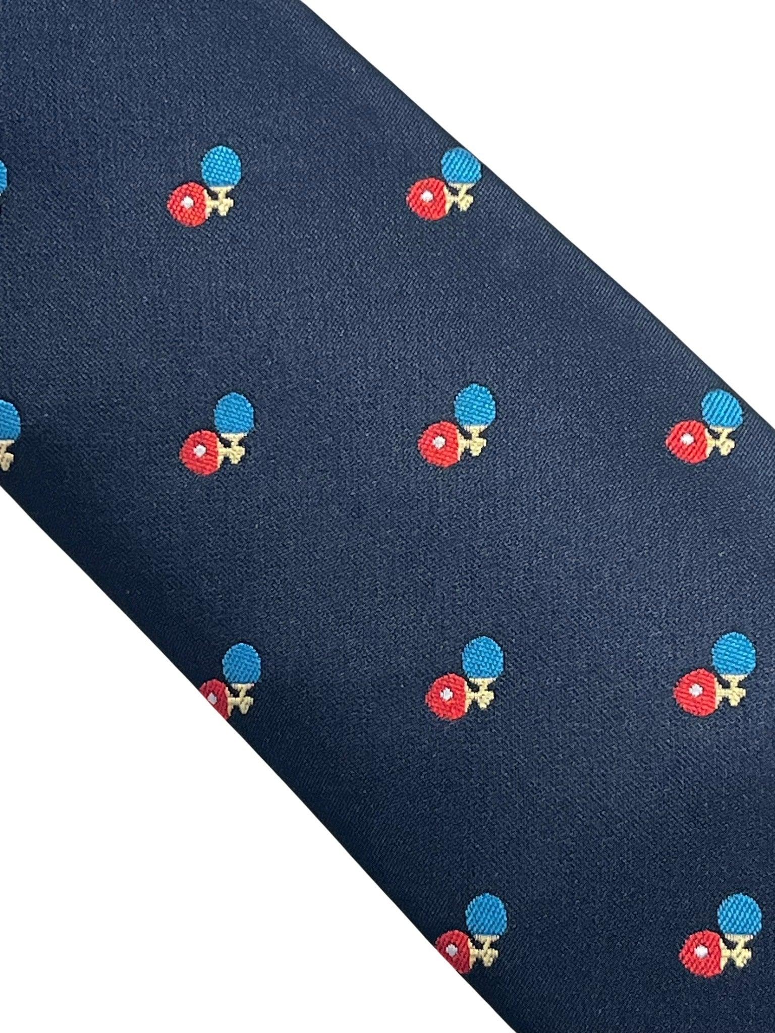 Navy blue classic tie with ping pong, table tennis bat design