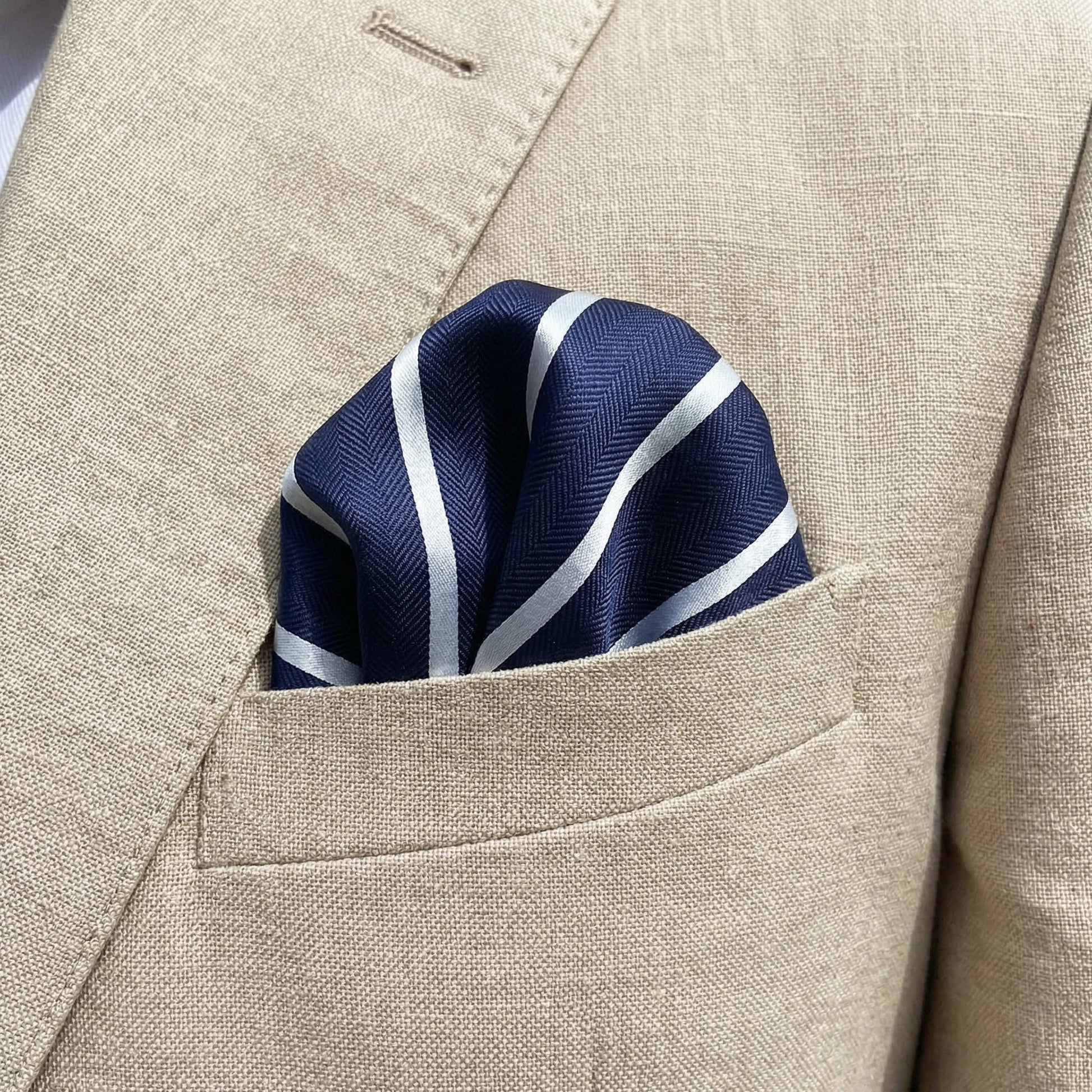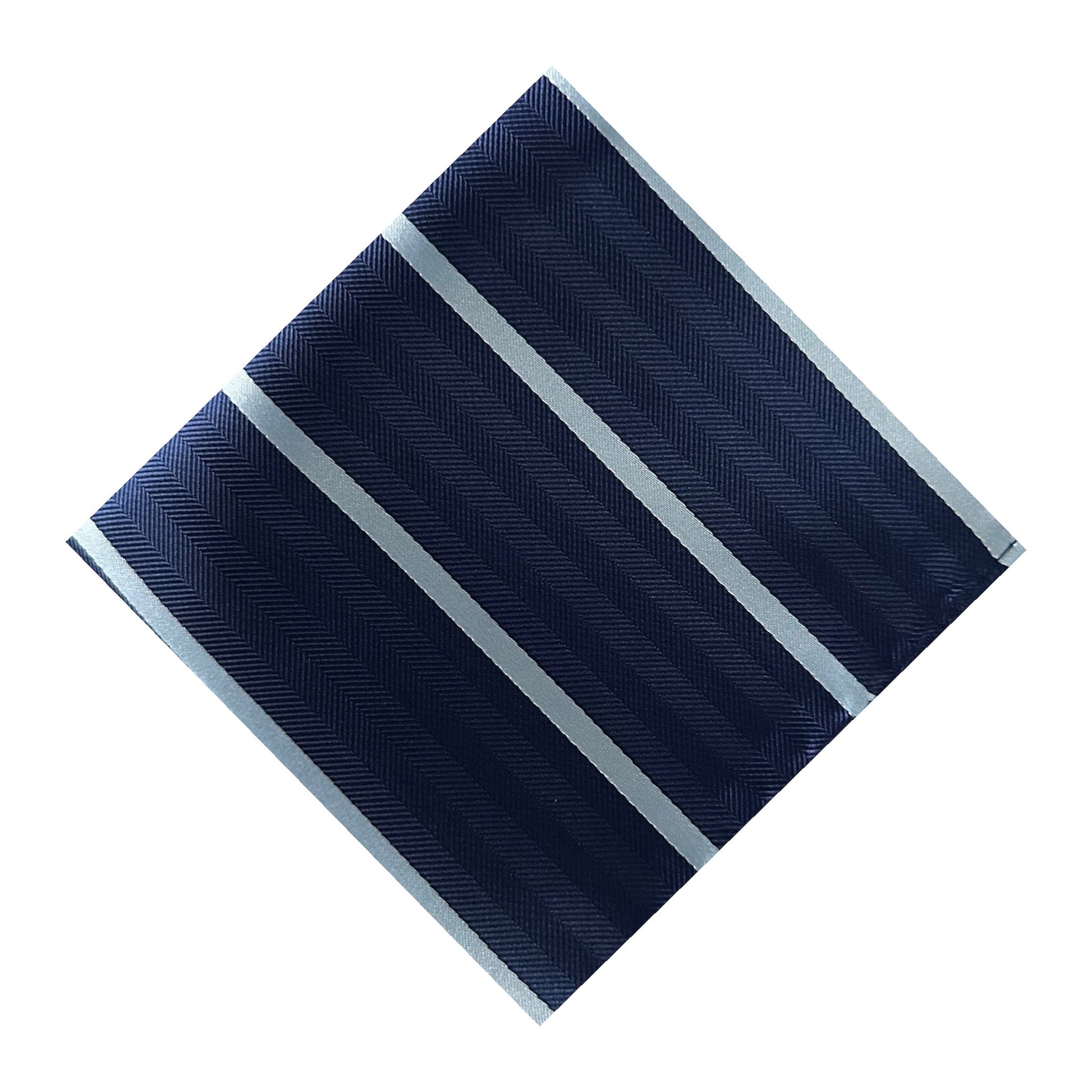Navy Blue & Light Blue Stripe Pocket Square - Hawksmoor Edit