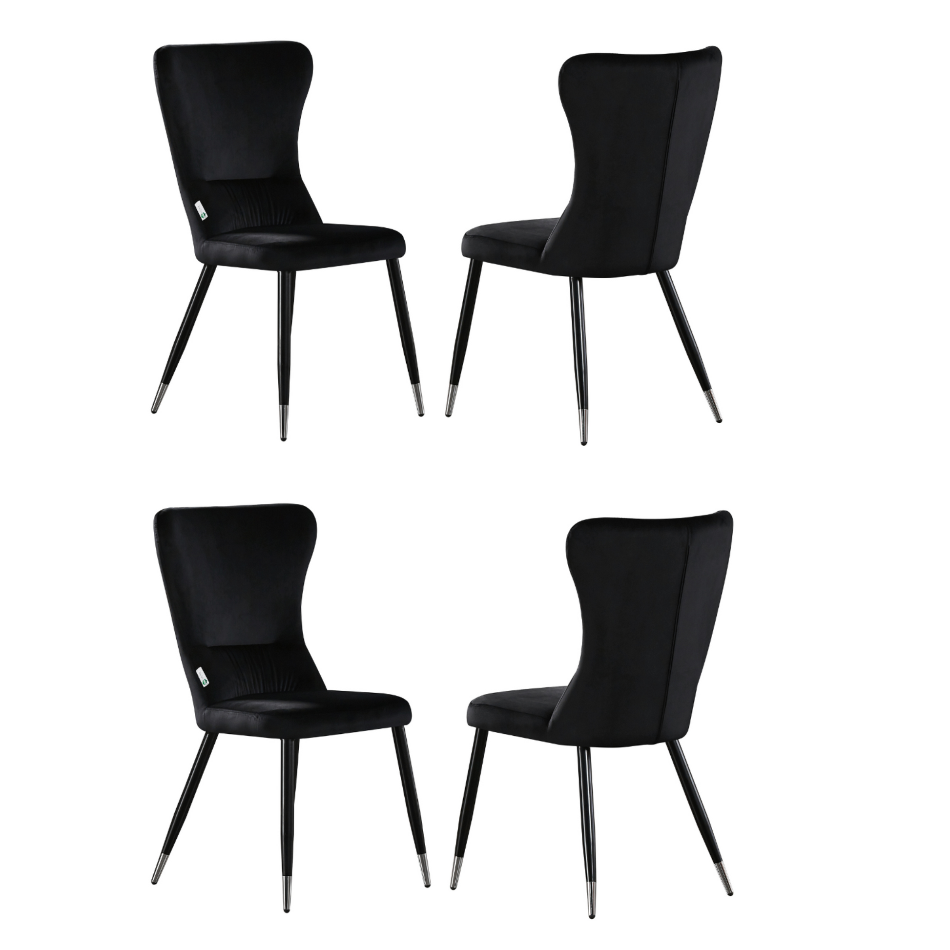 Inspired by Scandinavian design, our modern, classic, and full-of-passion dining side chair features a Curved high back, and contemporary black legs with silver chrome/ gold tips, all upholstered in rich, luxurious velvet. The chair is a true destination of relaxation and is absolute for any dining or living space. Perfectly suitable for dining chair, living room, meeting, restaurants, celebrations, dressing room, and office. You won't feel tired or stiff even though sitting for a long time.