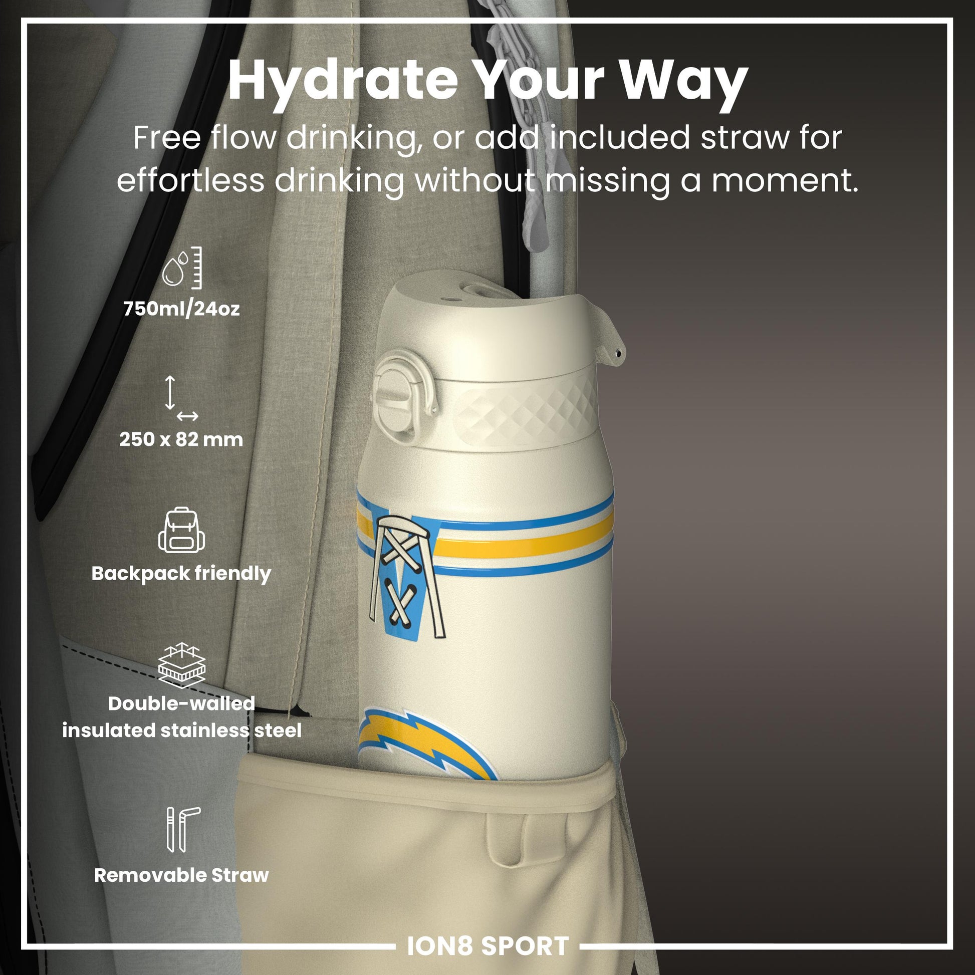 NFL x ION8 Insulated Steel Water Bottle, NFL Chargers, 750ml (24oz)