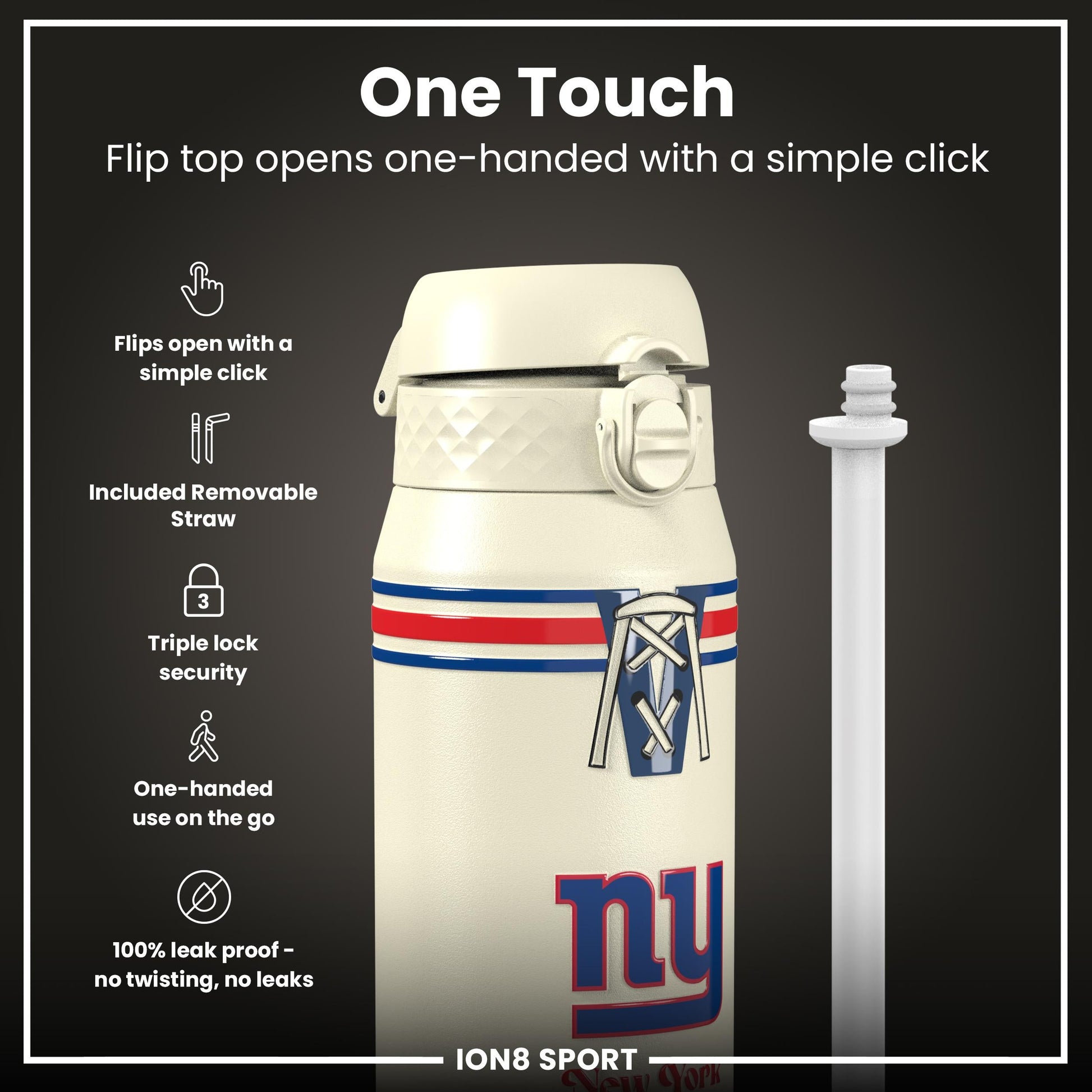 Raise your game with the Official NFL Thermal Insulated Bottle by ION8. Designed to meet the uncompromising standards of NFL, this 750ml double-wall stainless steel bottle combines premium performance with unmistakable NFL pride.