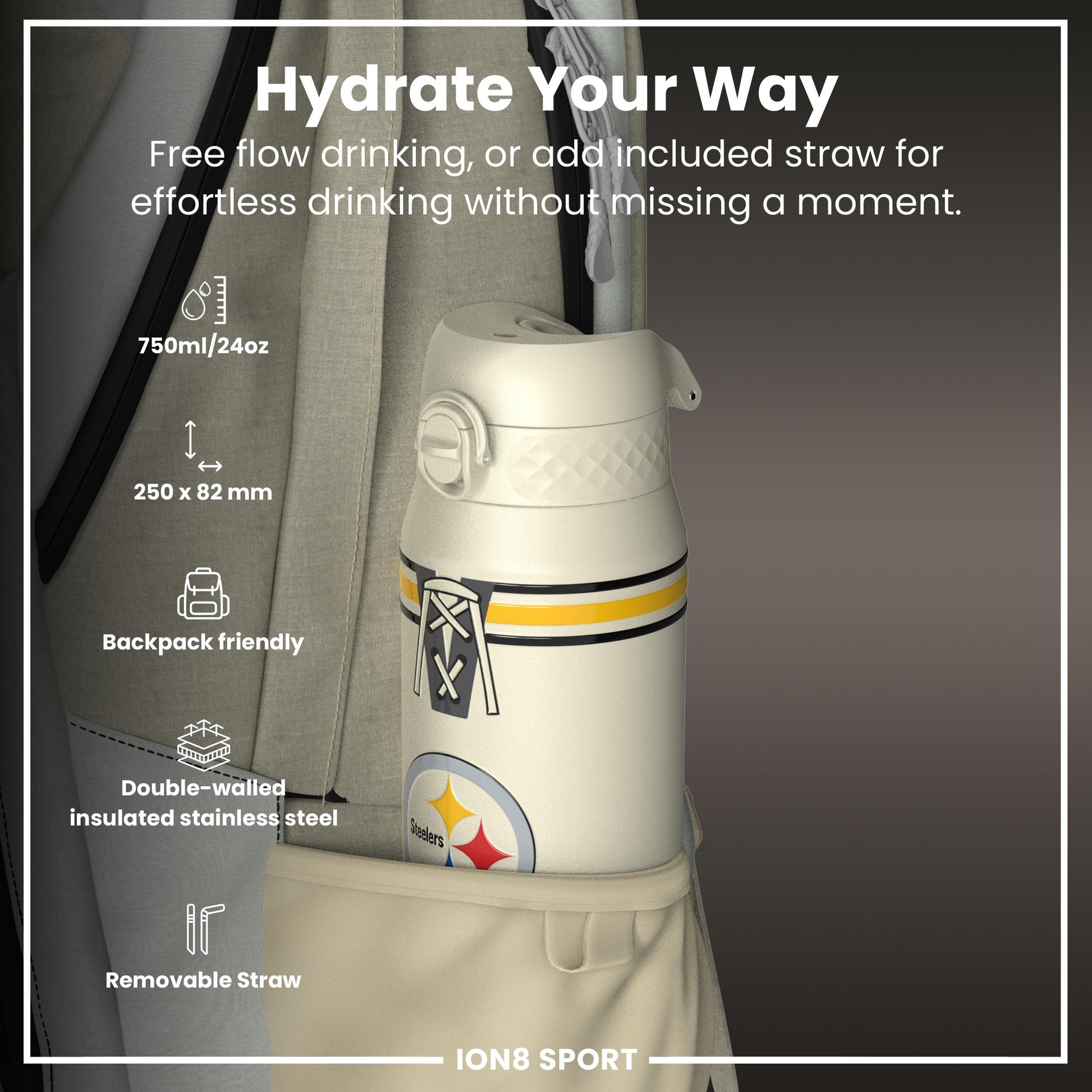 NFL x ION8 Insulated Steel Water Bottle, NFL Steelers, 750ml (24oz)