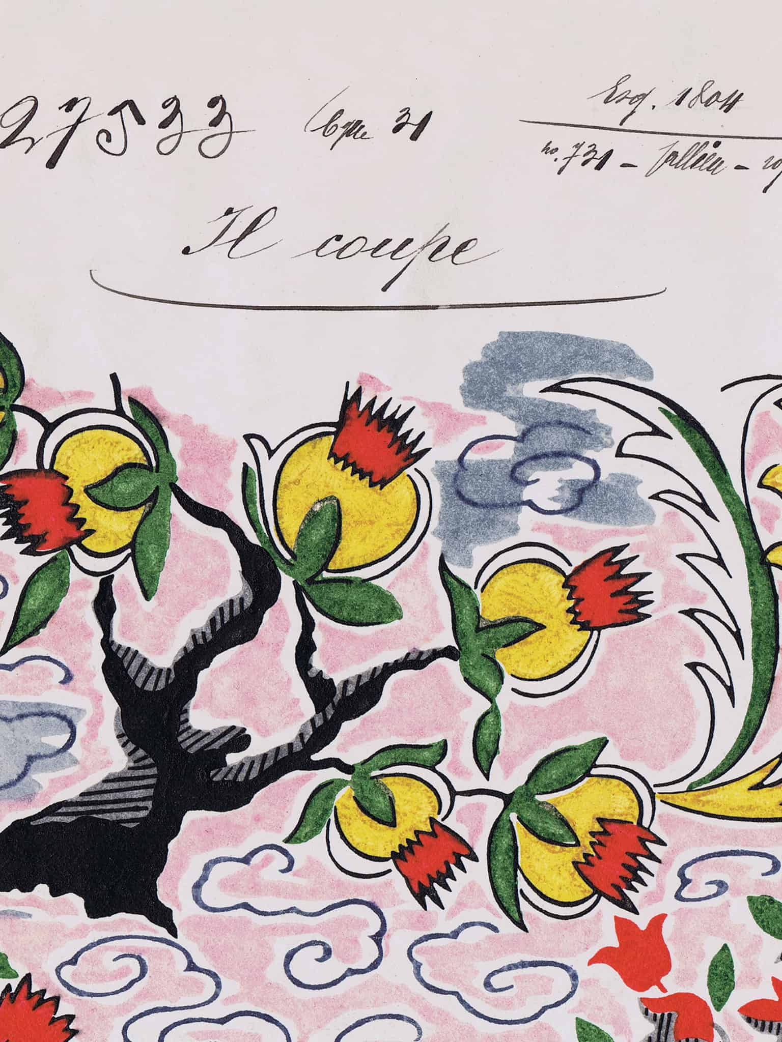 The pomegranate fruit is symbolic of fertility, beauty & eternal life and can be found on the abundant Tree Of Life. Originally designed in 1929, this French textile design is truly alive with symbolism and good fortune.