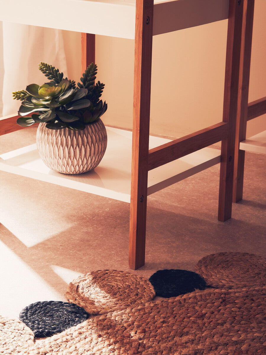 This shelf unit has a sturdy build and an uncluttered layout complementing contemporary interiors. Frame of this three tier shelf unit is made from sustainable bamboo with natural finish exuding warm hues that balance three crisp white shelves. The shelves are slightly recessed to keep the content inside safely stored and visible at the same time making it ideal for displaying your favourite decor accents.